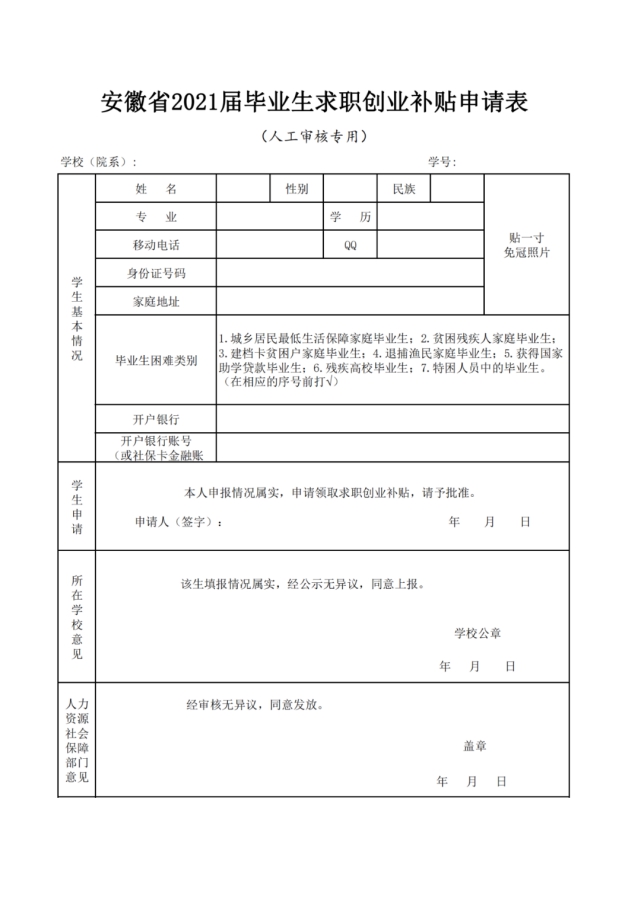 人工审核校验前需进行信息系统校验,信息系统自动审核校验不 通过而毕业生认为自己符合申请条件的毕业生,可在信息系统下 载相关申请表格(见附件),填写纸质申请表,并携带相关证明材 料(主要是家庭享受城乡居民最低生活保障的相关证明材料、建档立卡贫困家庭《扶贫手册》、退捕渔民家庭相关材料、获得国家 助学贷款的相关材料、毕业生本人或其父母残疾证以及特困高校 毕业生等相关证明材料),提交所属院校进行人工审核校验。相关 院校及时组织人工审核校验,对人工审核校验通过的,要在申请 表上加盖院校公章,并集中统一提交当地人力资源社会保障部门。 当地人力资源社会保障部门负责登录信息系统,通过信息系统审 核校验。