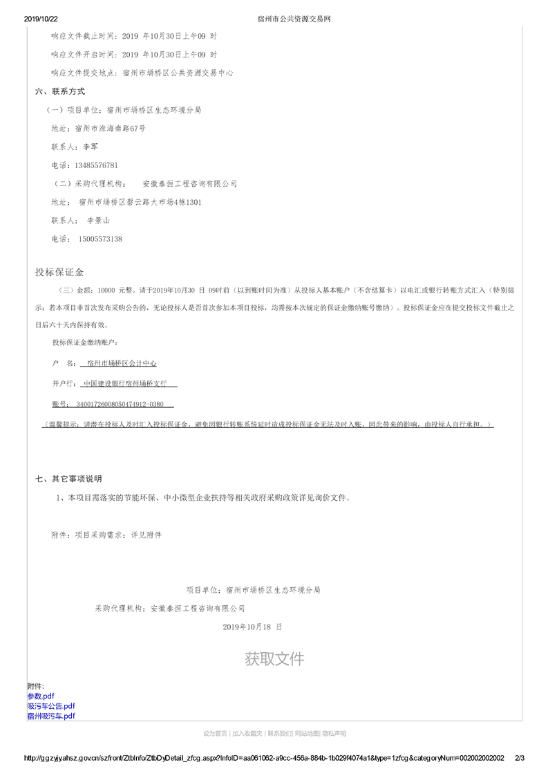 宿州市埇桥区生态环境分局2019年环境整治吸污车采购项目(二次)采购项目询价公告
