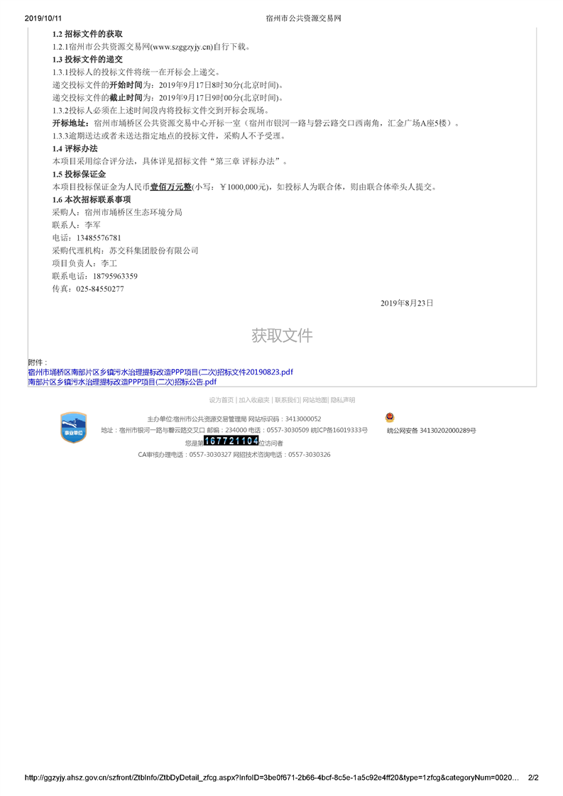 宿州市埇桥区南部片区乡镇污水治理提标改造PPP项目(二次)招标公告(投标邀请函)