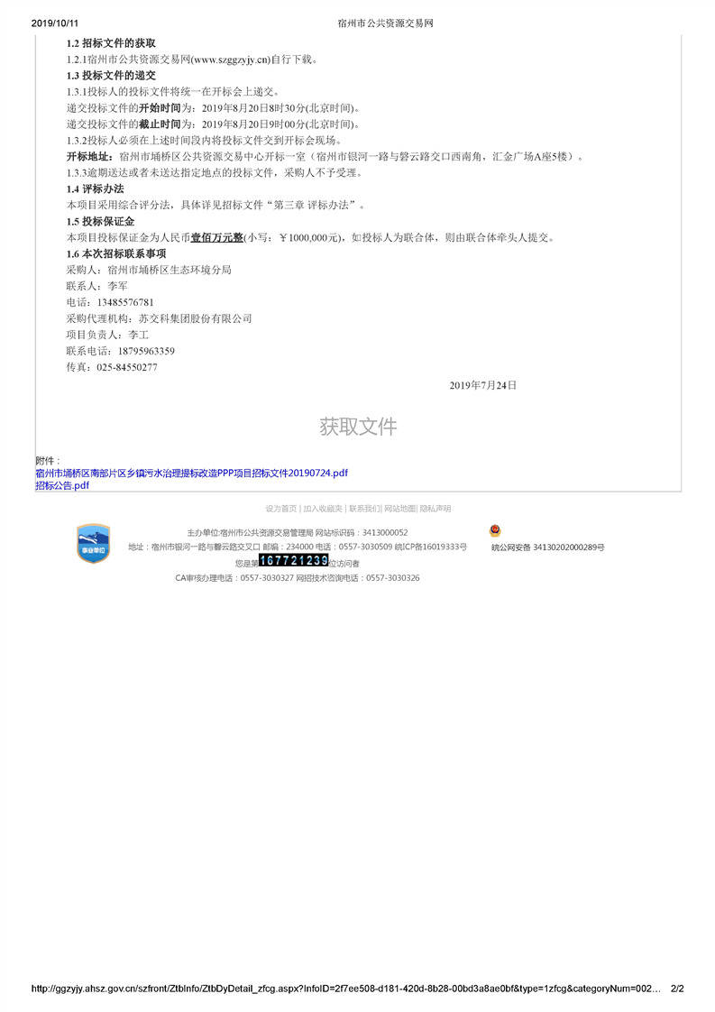 宿州市埇桥区南部片区乡镇污水治理提标改造PPP项目招标公告(投标邀请函)