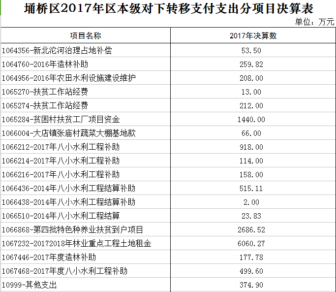 埇桥区2017年区本级对下转移支付支出分项目决算表