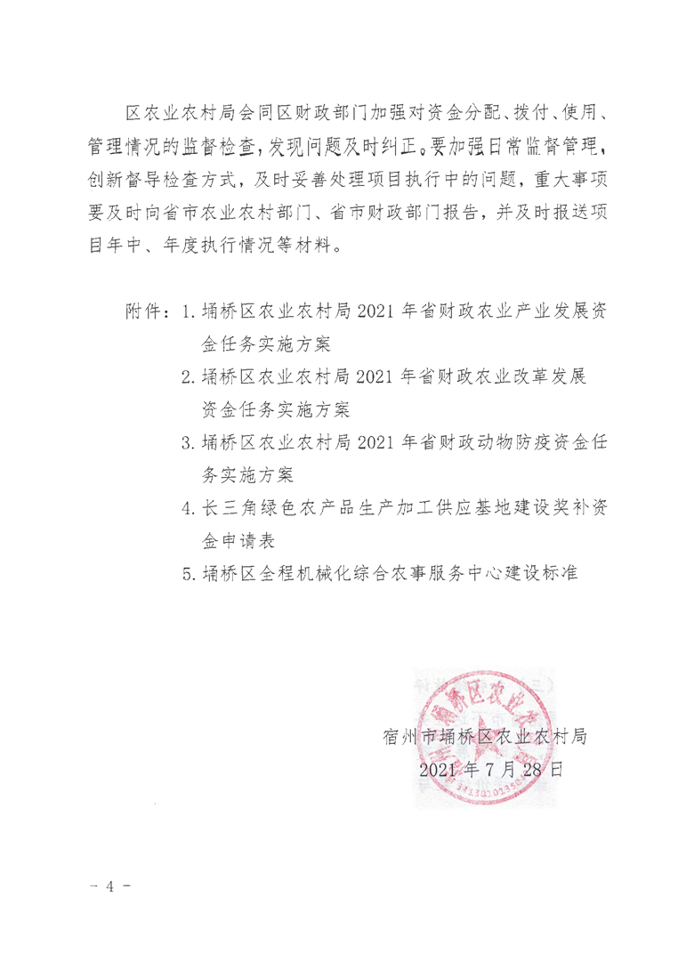 埇桥区农业农村局关于做好2021年省财政农业产业发展等项目实施工作的通知