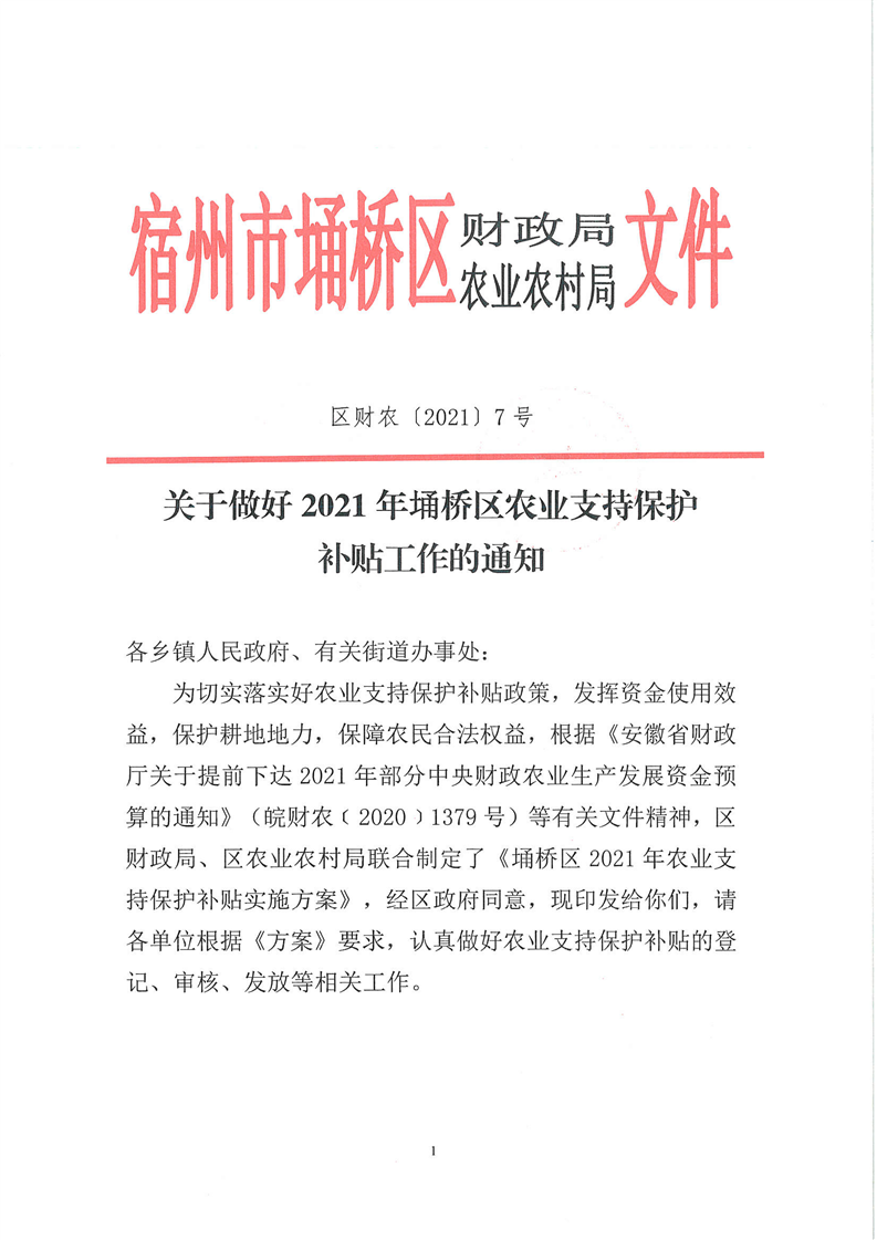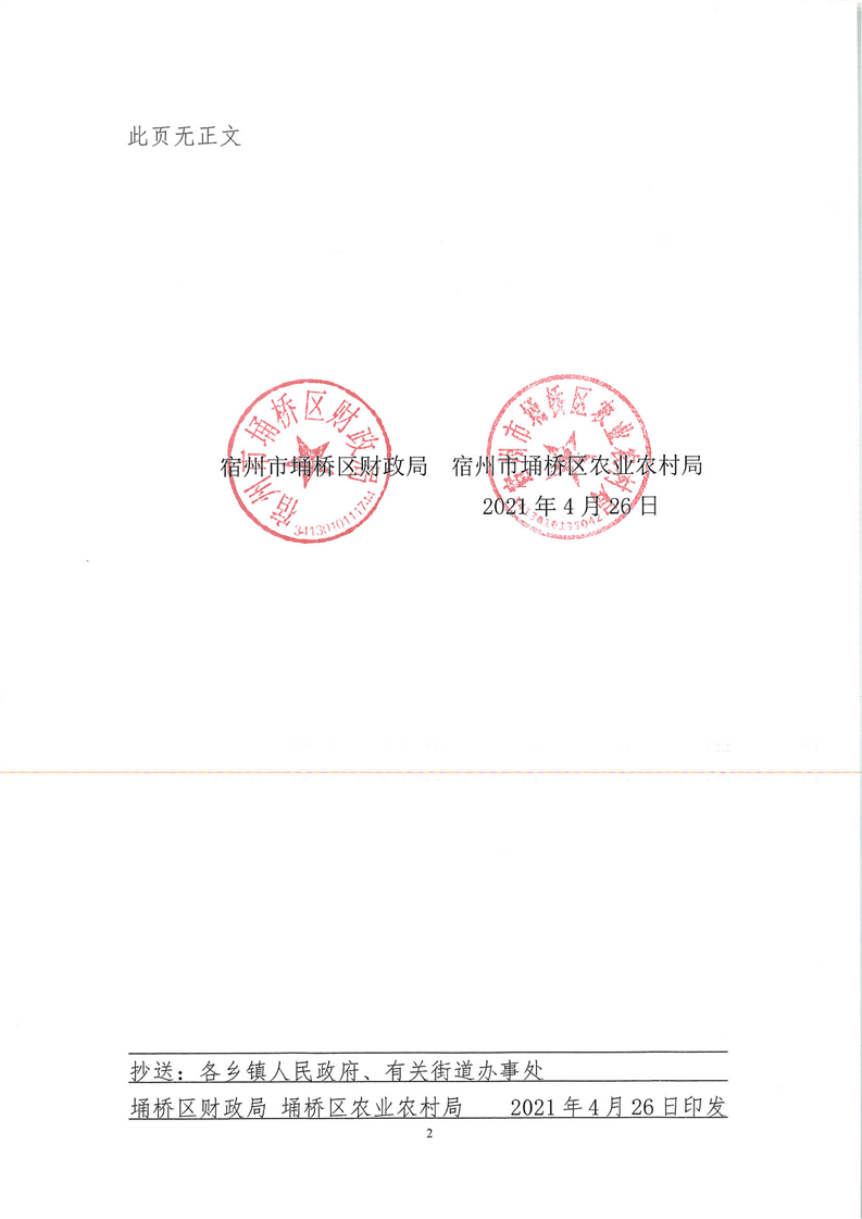 埇桥区财政局埇桥区农业农村局关于做好2021年埇桥区农业支持保护补贴工作的通知