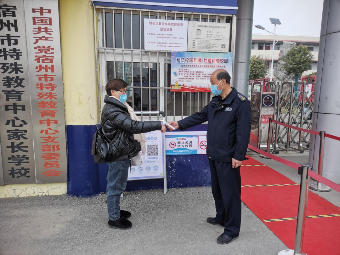 宿州市特殊教育中心党支部书记、校长尹成飞要求全体党员教师要切实发挥模范带头作用,以更高的政治自觉、更强的责任担当、更严的防控措施、更实的工作作风,从严从紧落实各项防控措施,全力守护师生生命健康。