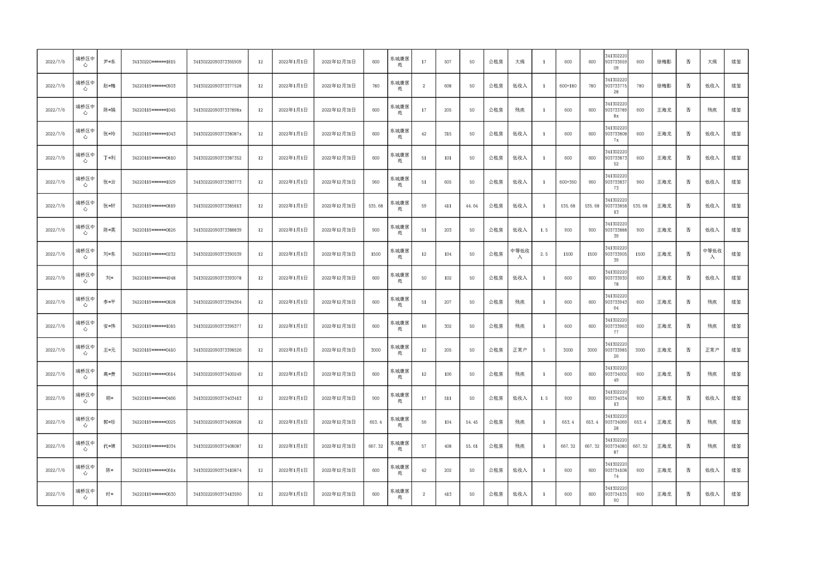 【租金收取】埇桥区2022年三季度保障性住房租金收取信息