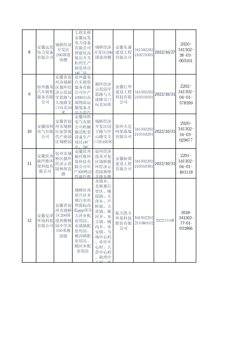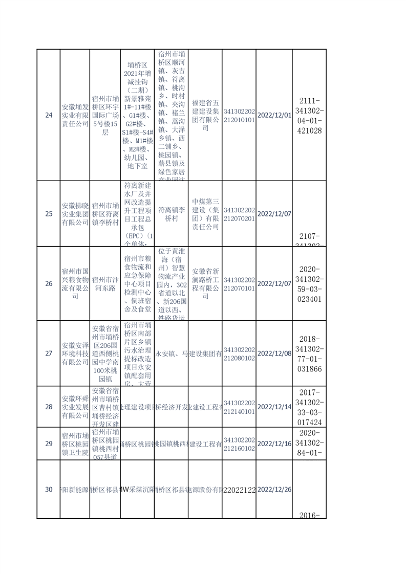 宿州市埇桥区住房和城乡建设局2022年第四季度施工许可证办理情况一览表