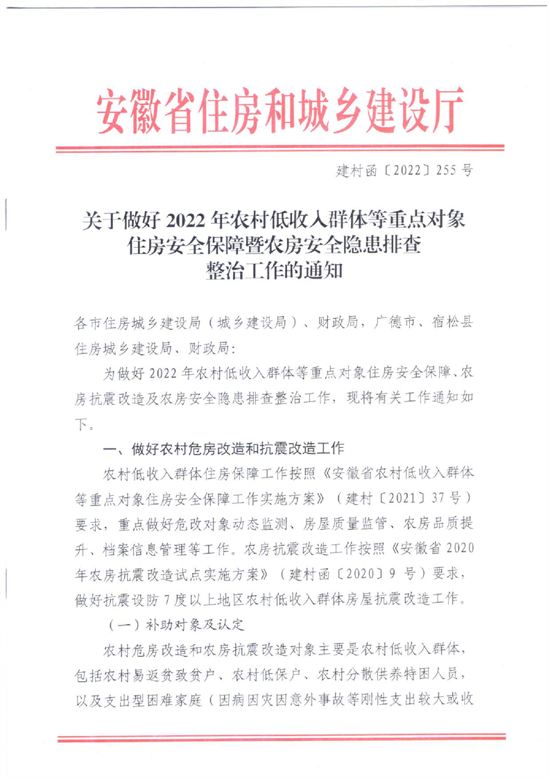 关于做好2022年农村低收入群体等重点对象住房安全保障暨农房安全隐患排查整治工作的通知