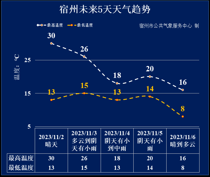 宿州未来五天天气趋势今天夜里到明天白天:晴天