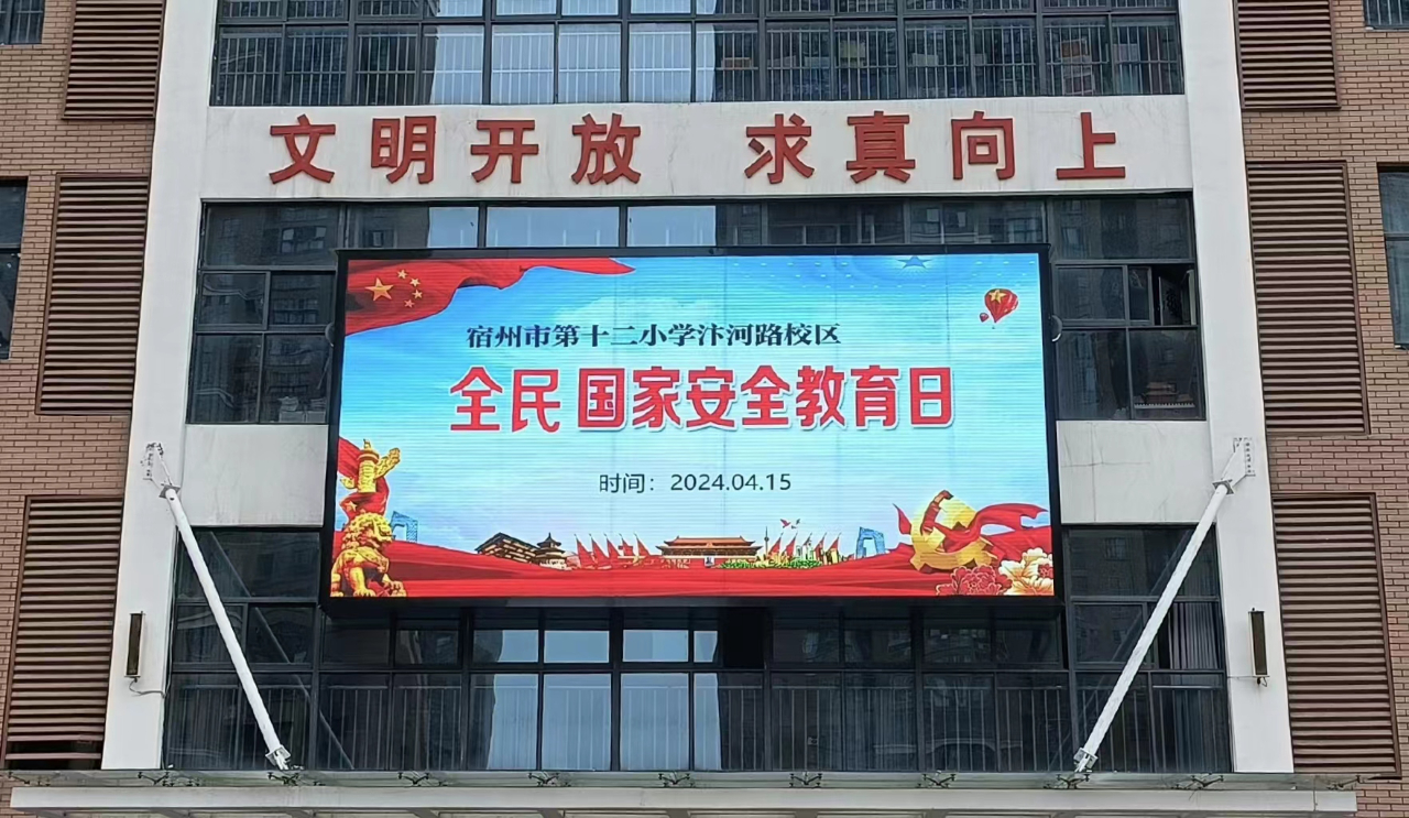 4月15日,各校充分利用电子屏、专栏、橱窗等宣传阵地,开展国家安全主题宣传。宿州市第十二小学、大泽乡镇丁寨小学、符离中学等校通过电子屏、宣传栏展示国家安全教育日相关海报和标语,将安全教育融入到当日的校园学习生活中,提高全体师生的国家安全意识,营造学习相关主题知识的良好氛围。