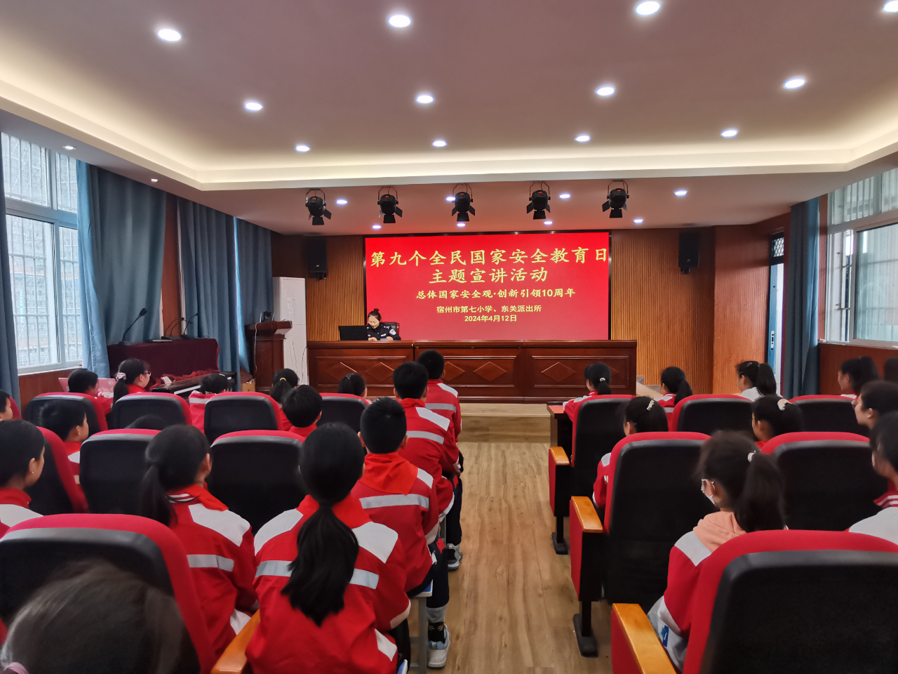 港利小学少先队员代表在校会上作了主题为《祖国安全记心中,争做祖国小卫士》的国旗下讲话,用快板和朗诵相结合的形式表达了维护国家安全的重要性;宿州市第六小学、第七小学、第九小学、曹村中心校、朱仙庄中心校、博睿学校开展国家安全专题宣讲教育课,引导学生从小树立总体国家安全观,自觉履行维护国家安全的义务,争做维护国家利益和国家安全的宣传者、践行者和守护者;矿建中学开展了“国家安全,青春挺膺”主题团课活动,从危害国家安全的行为、罪名及法律法规等5个方面,向团员和入团积极分子介绍了国家安全的相关知识,让同学们牢记举报电话12339。