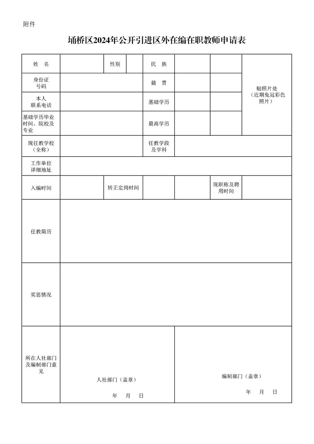附件:埇桥区2024年公开引进区外在编在职教师申请表