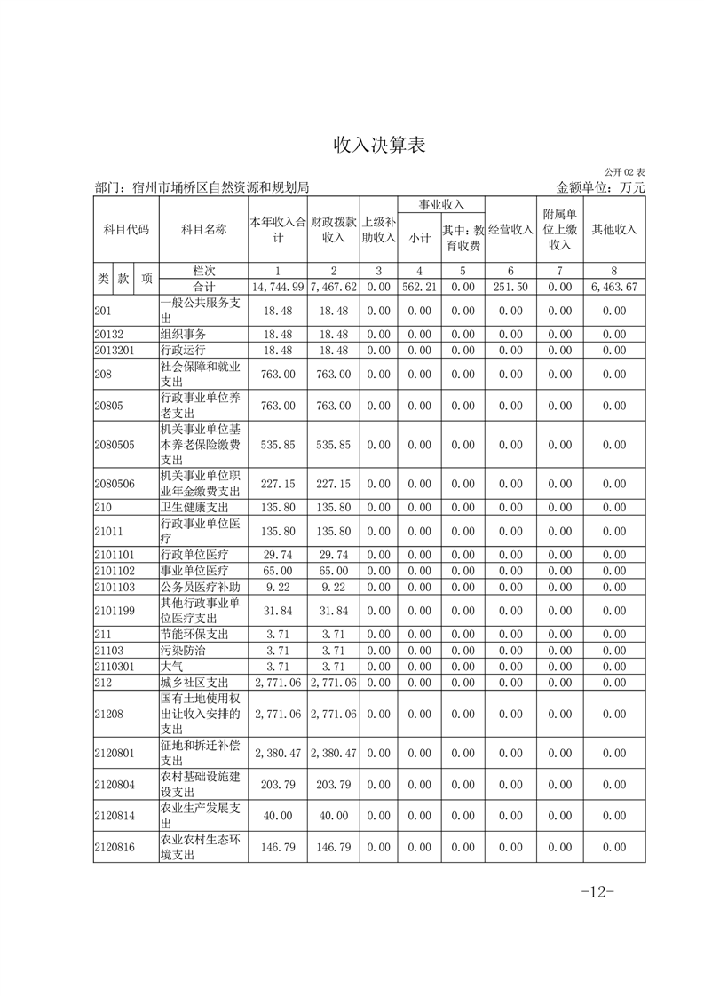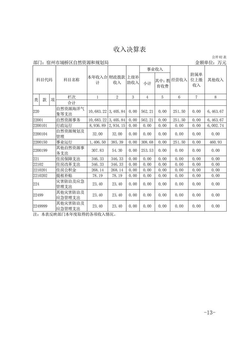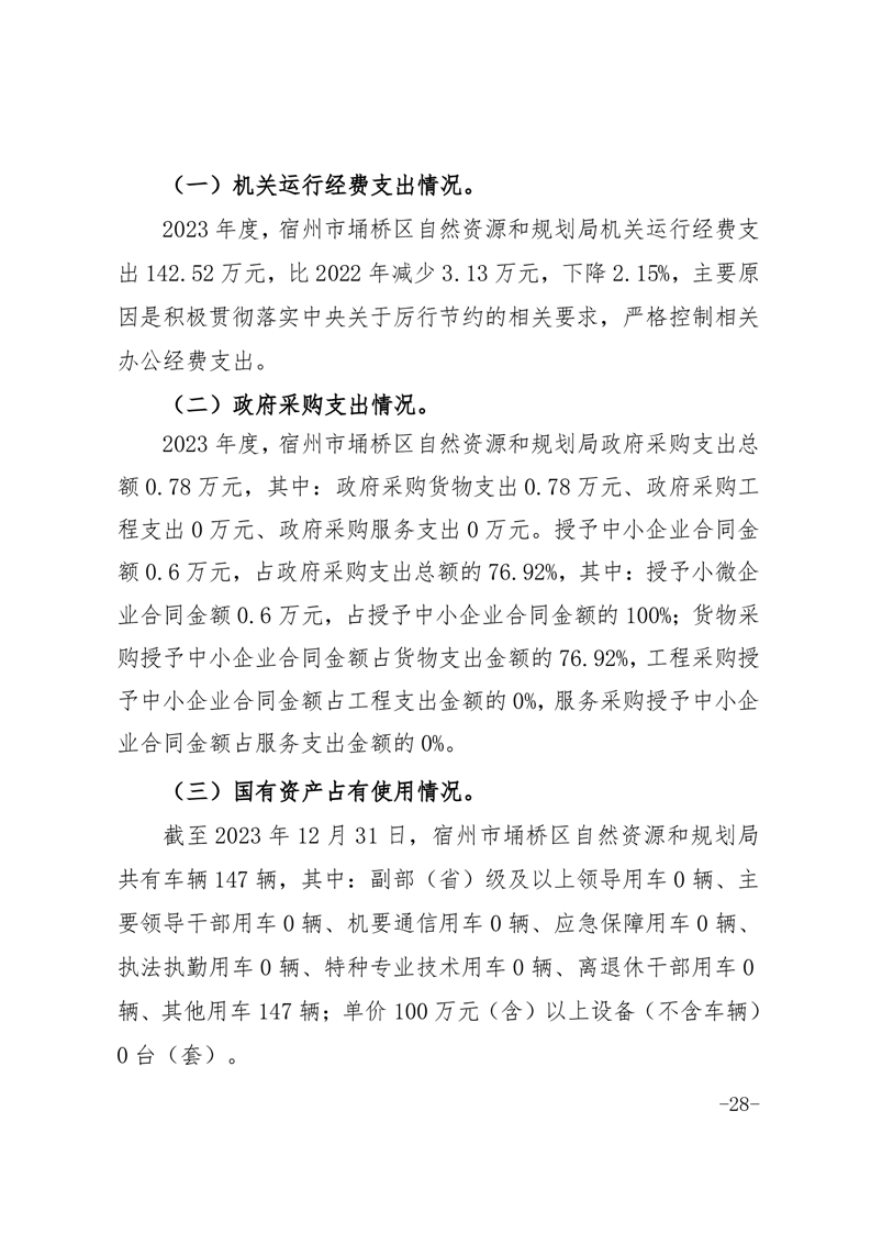 宿州市埇桥区自然资源和规划局2023年度部门决算公开