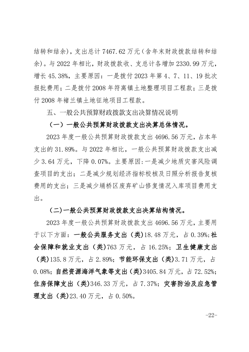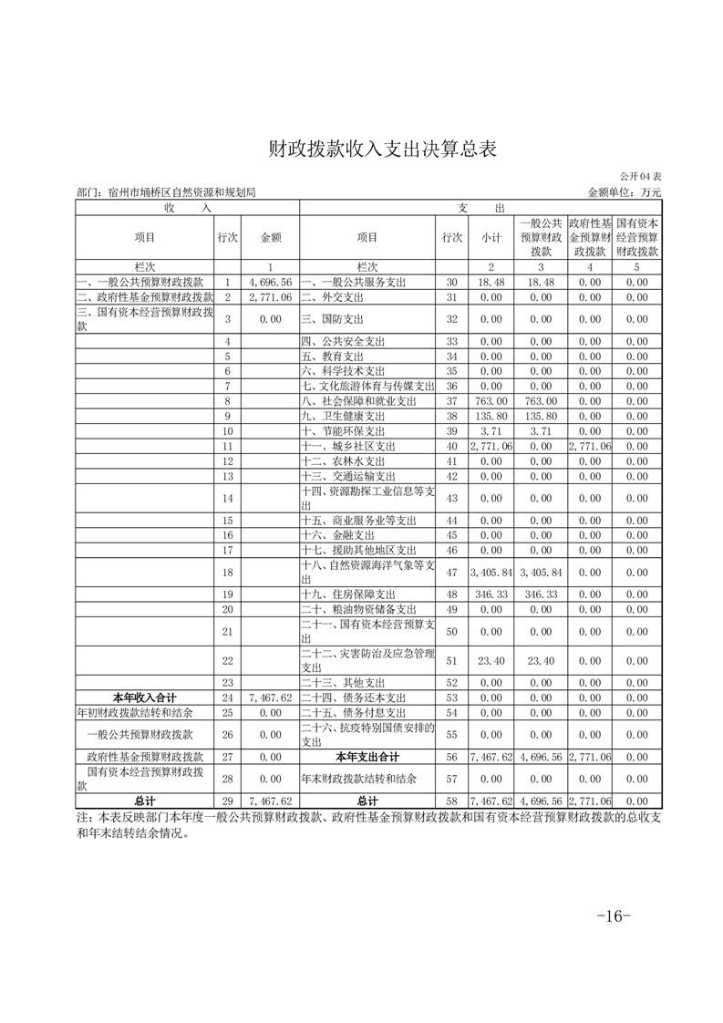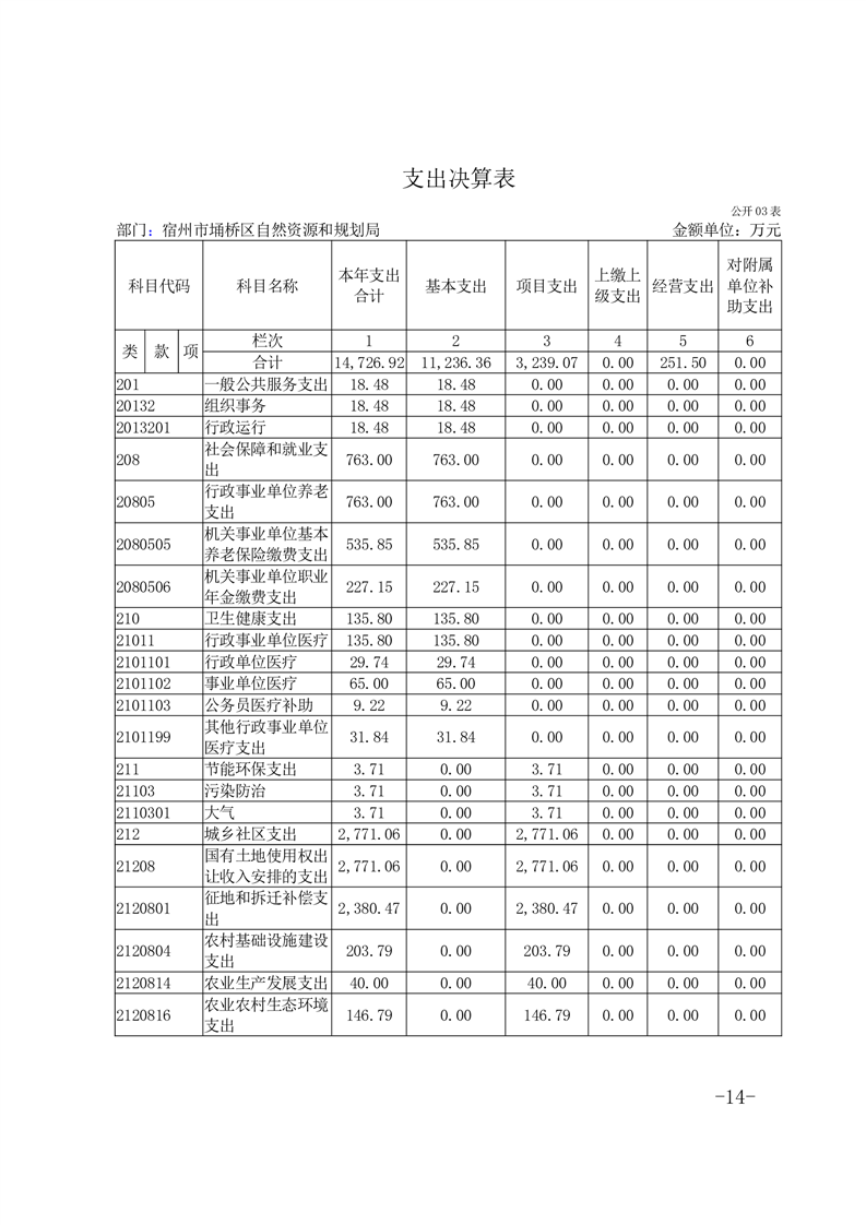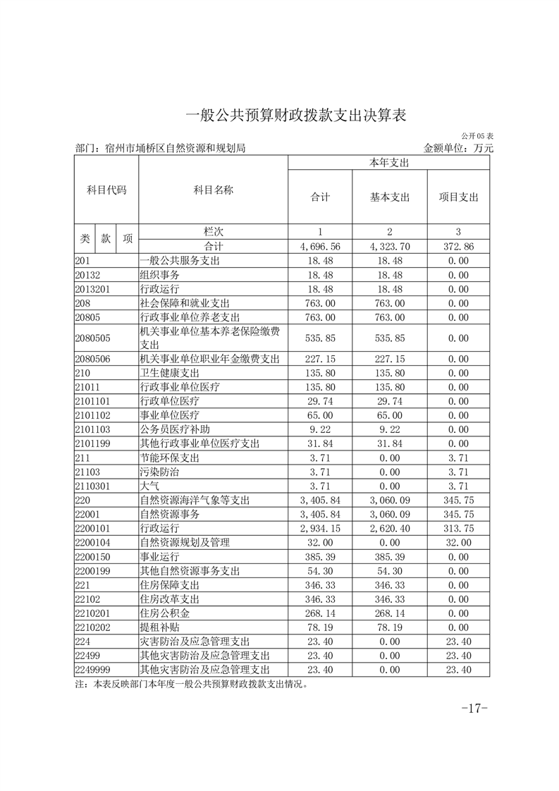 宿州市埇桥区自然资源和规划局2023年度部门决算公开