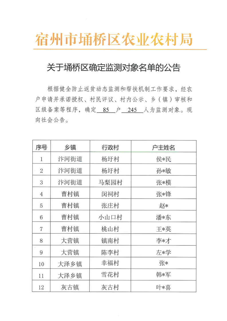 关于埇桥区确定监测对象名单的公告