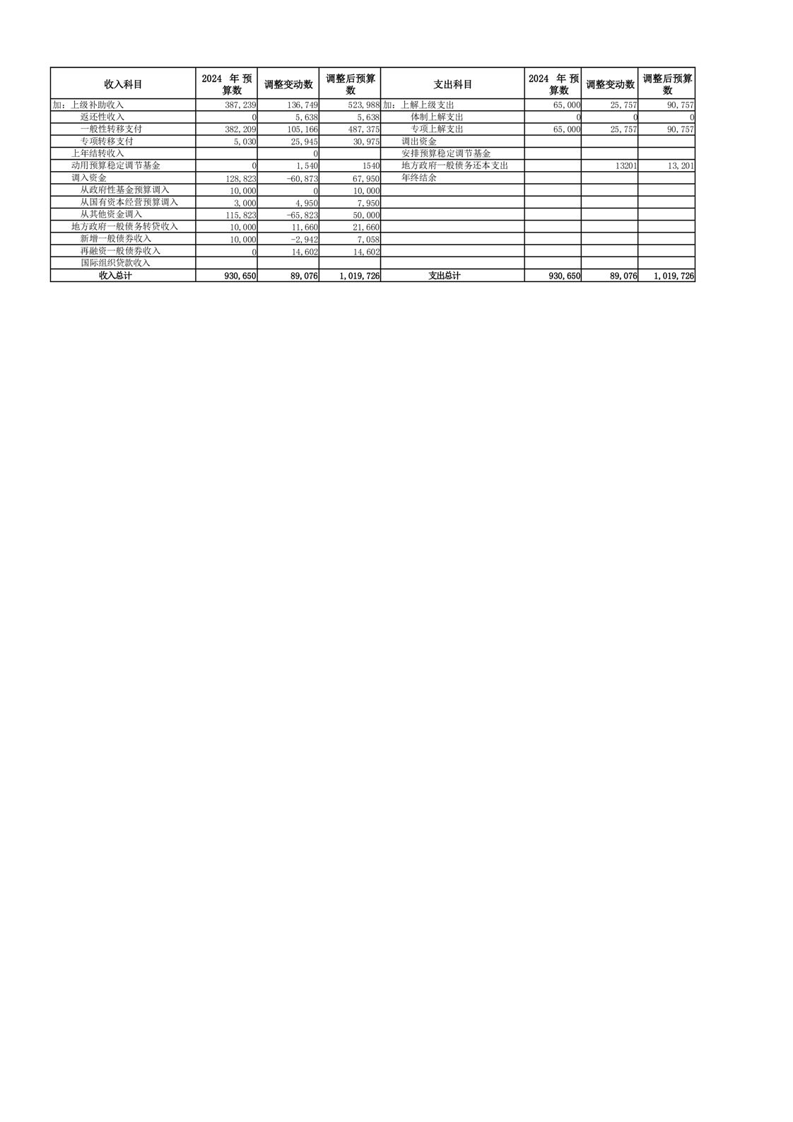 埇桥区2024年预算调整方案