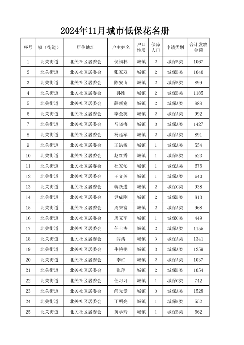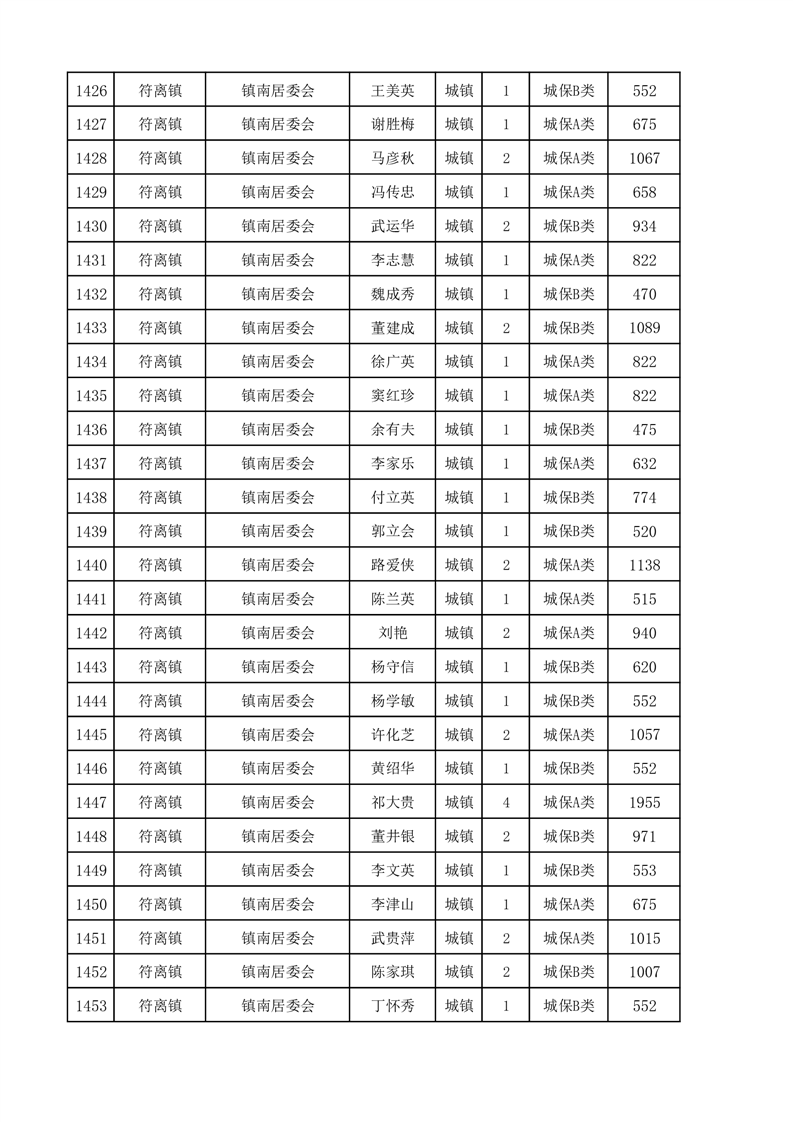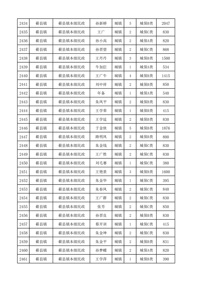 埇桥区2024年12月份城镇低保花名册