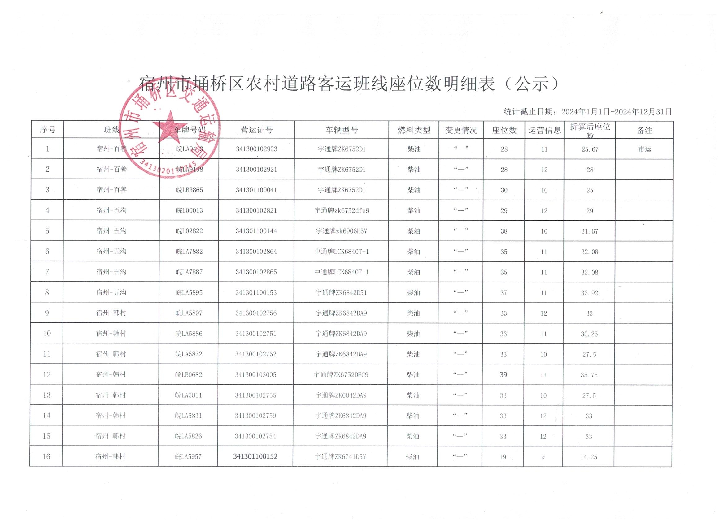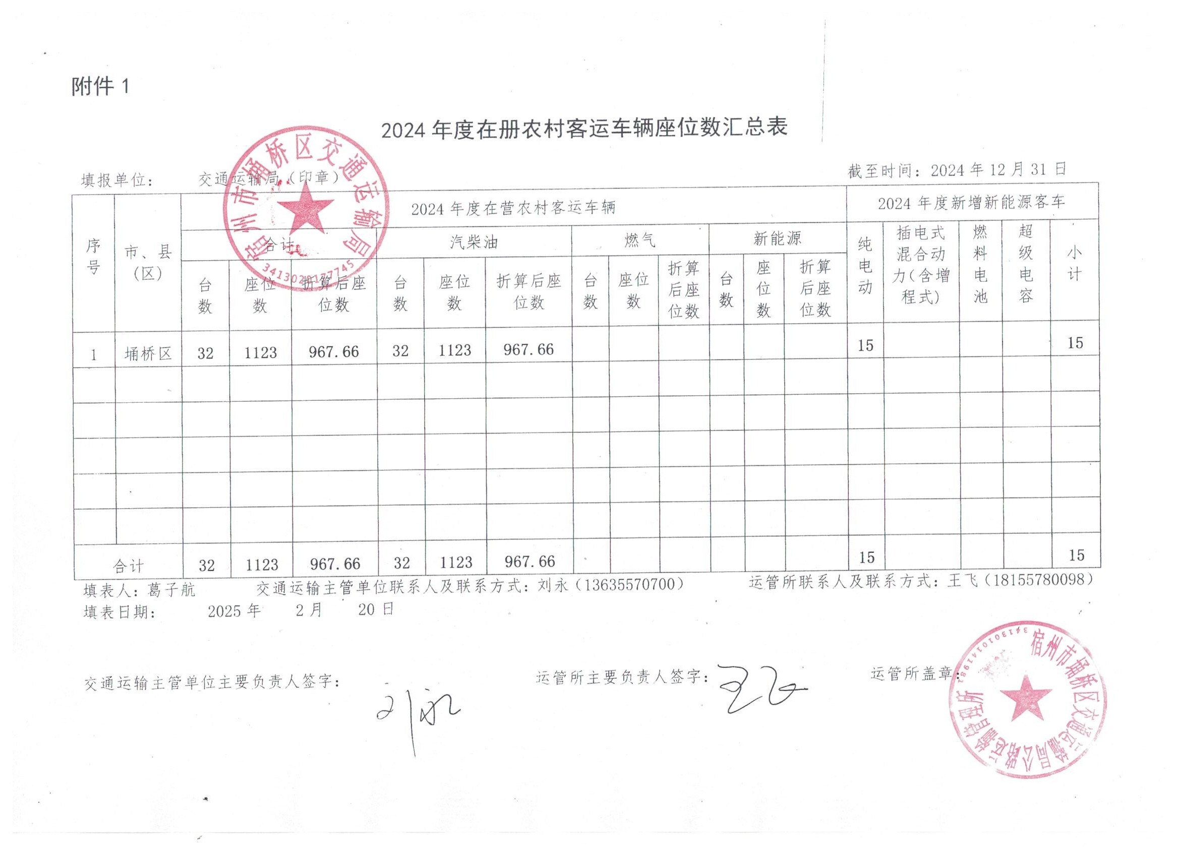 2024年度在营农村道路客运班线座位数明细及年度新增或更新新能源客车明细