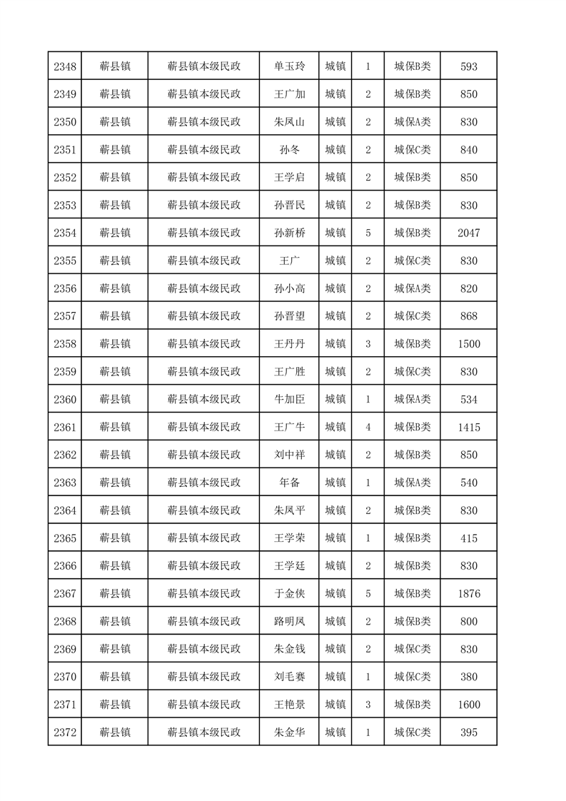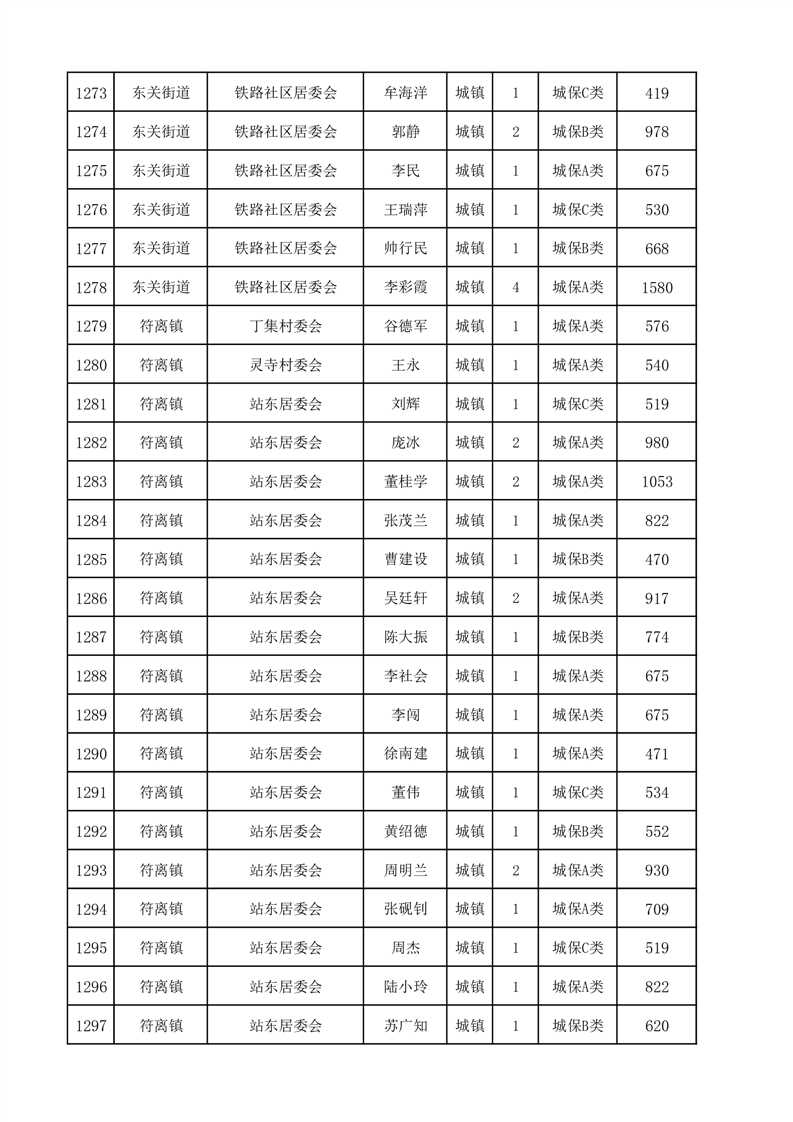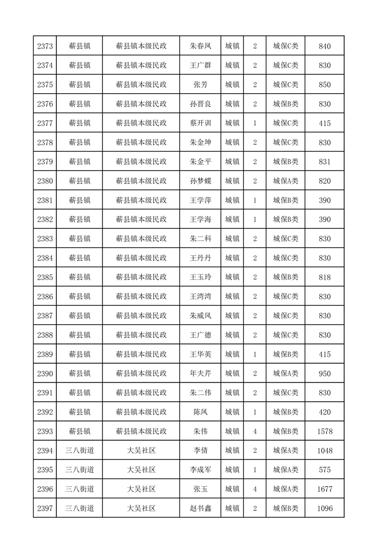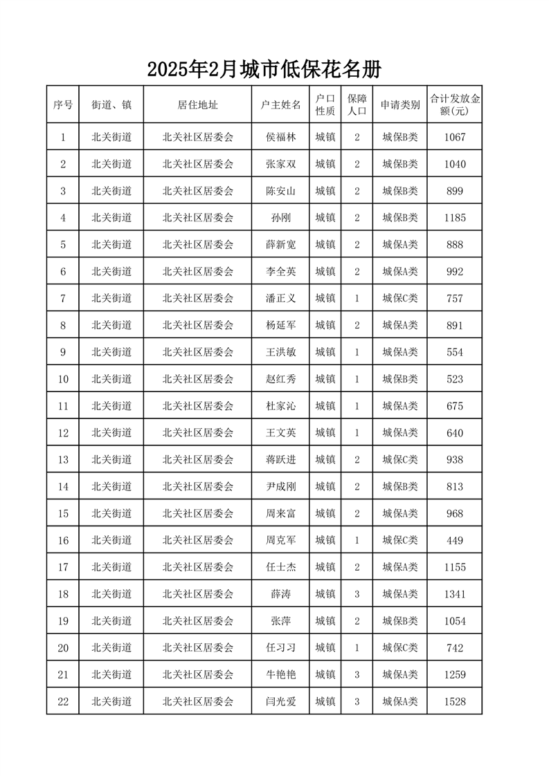 埇桥区2025年2月份城镇低保花名册