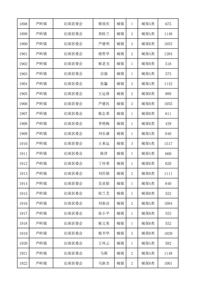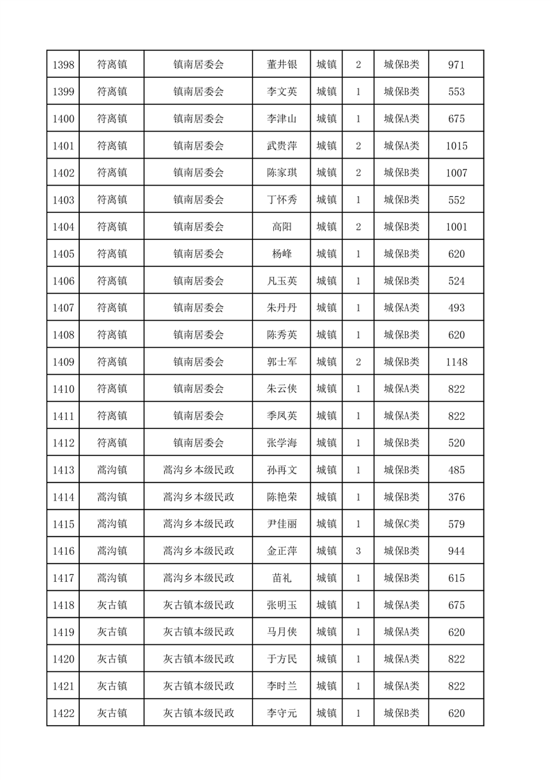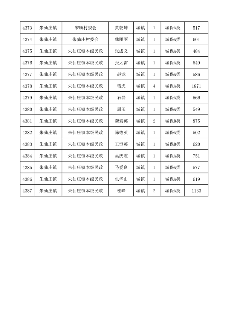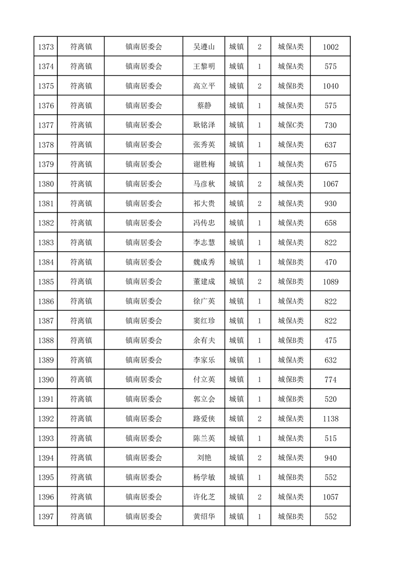 埇桥区2025年2月份城镇低保花名册