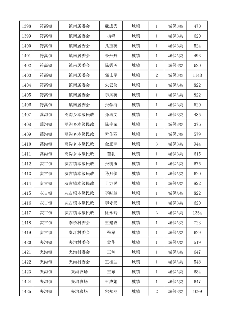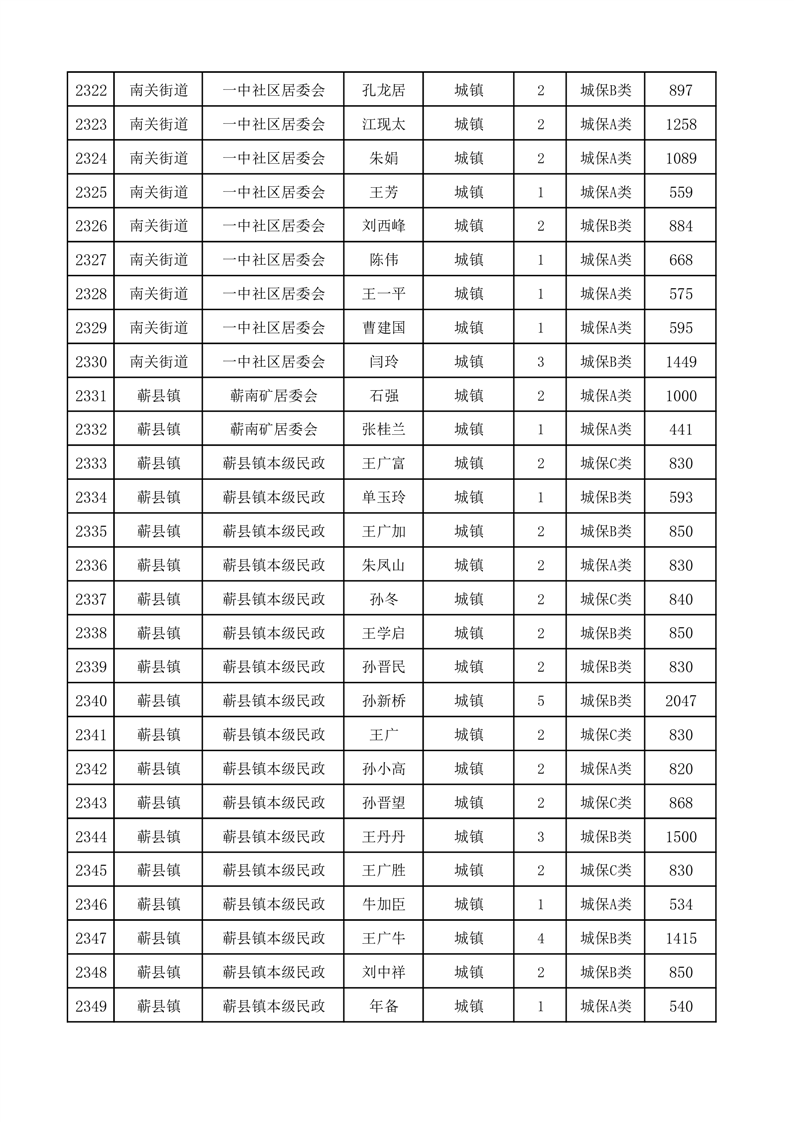 埇桥区2025年3月份城镇低保花名册