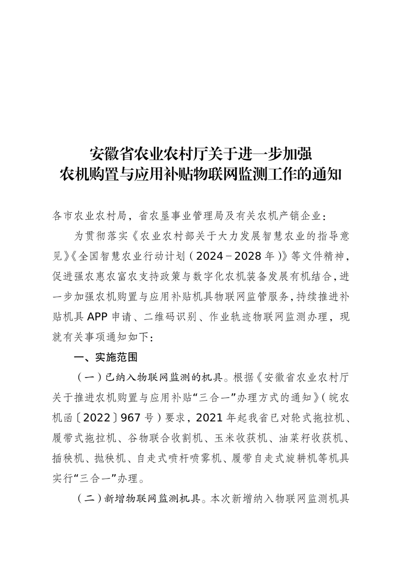 安徽省农业农村厅关于进一步加强农机购置与应用补贴物联网监测工作的通知