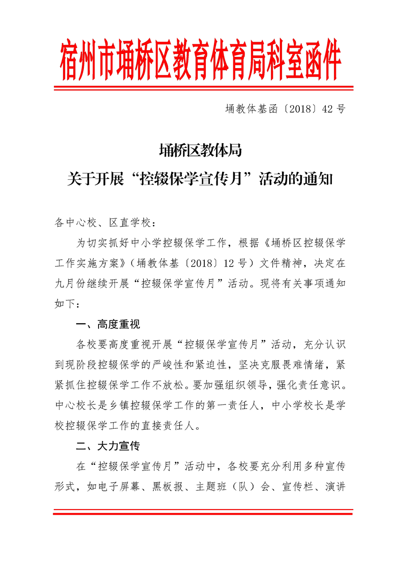 埇桥区教体局关于开展“控辍保学宣传月”活动的通知