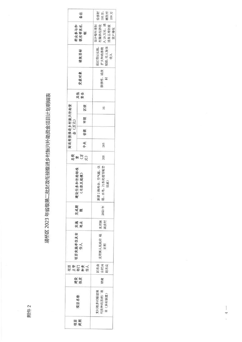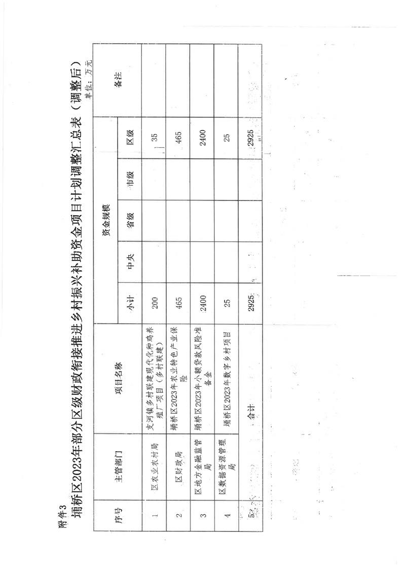 关于埇桥区2023年省级第二批财政衔接推进乡村振兴补助资金分配方案及项目计划和部分区级衔接资金项目计划调整的批复
