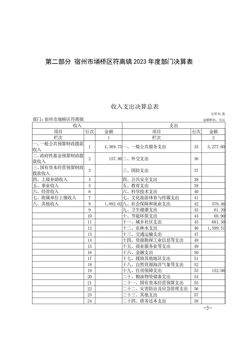 2023年度宿州市埇桥区符离镇人民政府部门决算公开