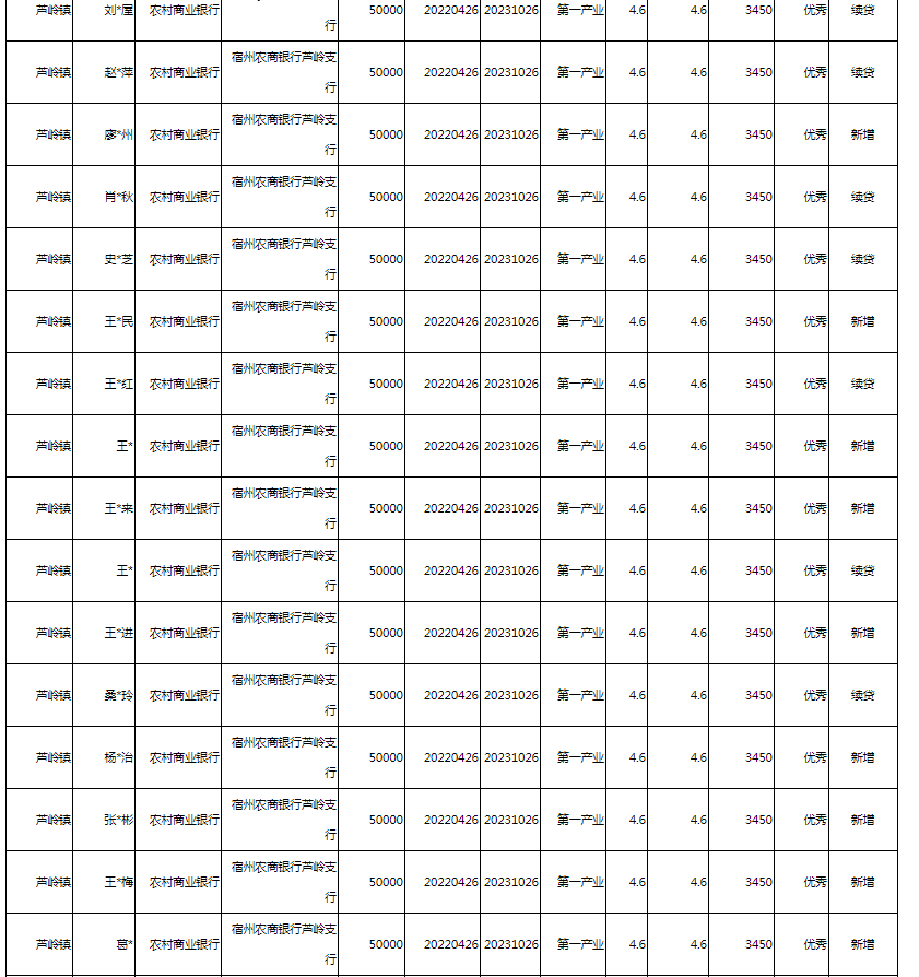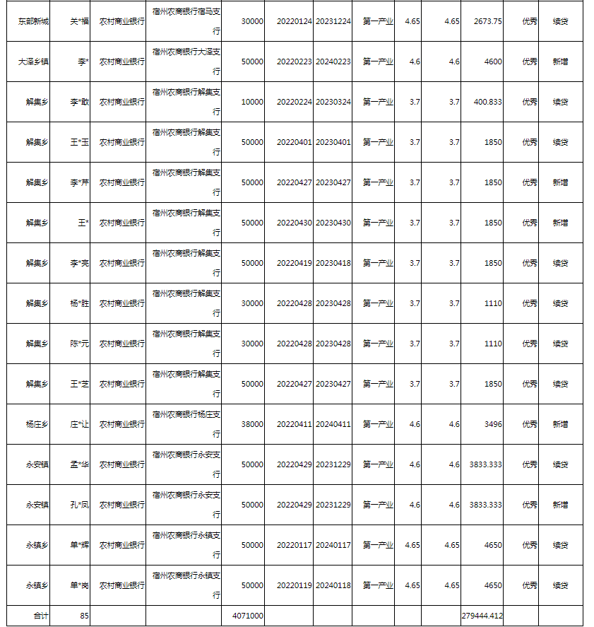 【精准扶贫小额贷款】埇桥区2022年第一季度小额信贷信息