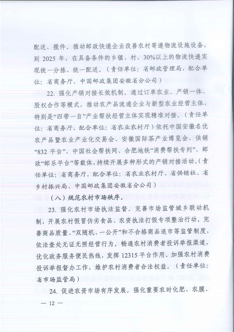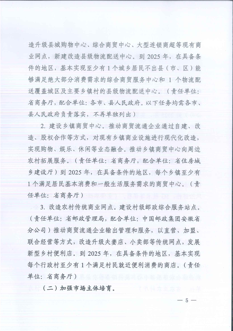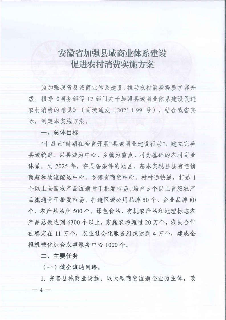 【省级政策】安徽省商务厅等17部门关于印发《安徽省加强县域商业体系建设促进农村消费实施方案》的通知