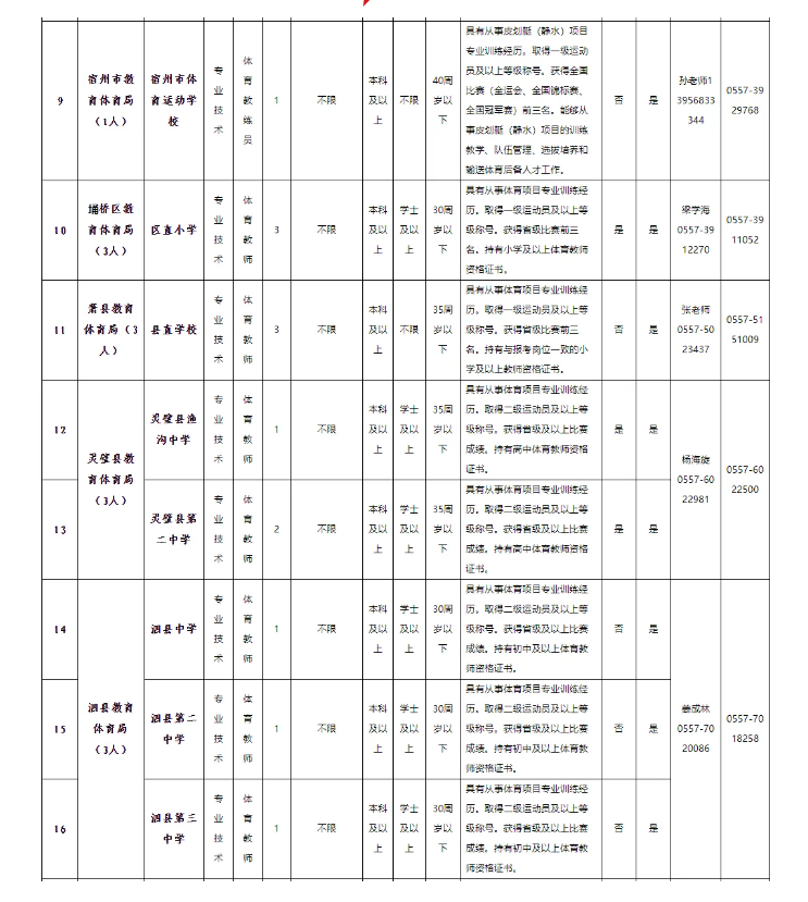 1.2024年面向我省退役运动员专项公开招聘体育教师和体育教练员岗位表