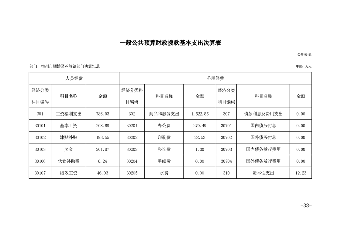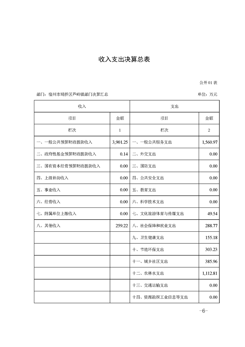 宿州市埇桥区芦岭镇人民政府2020年部门决算