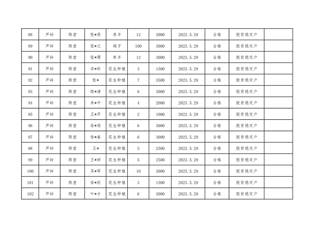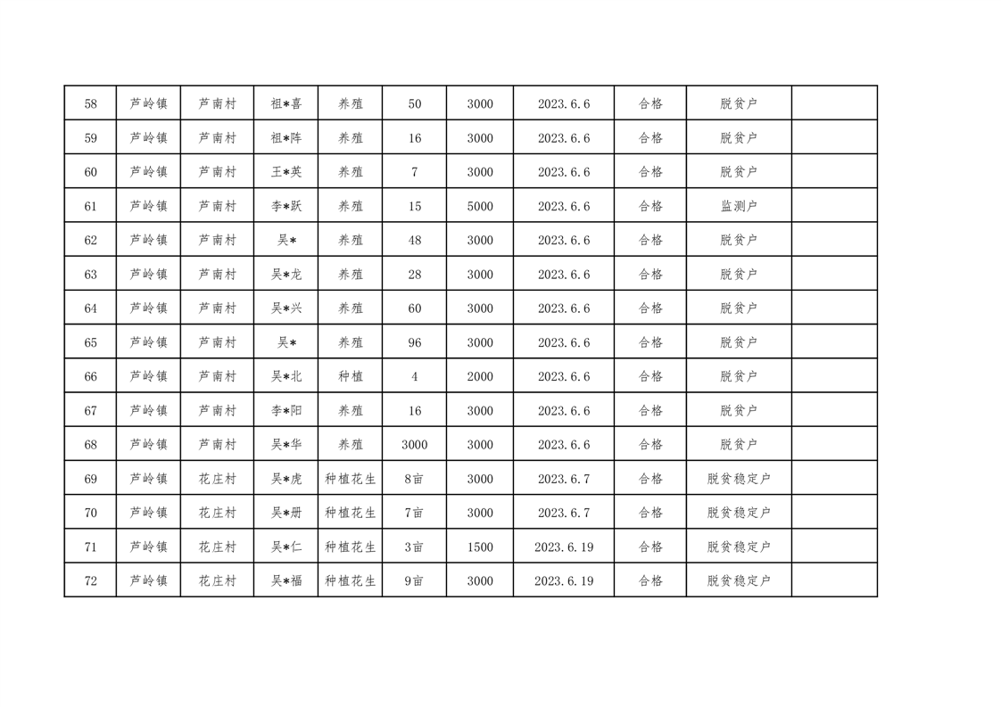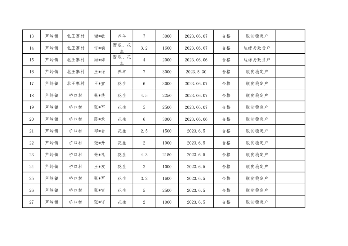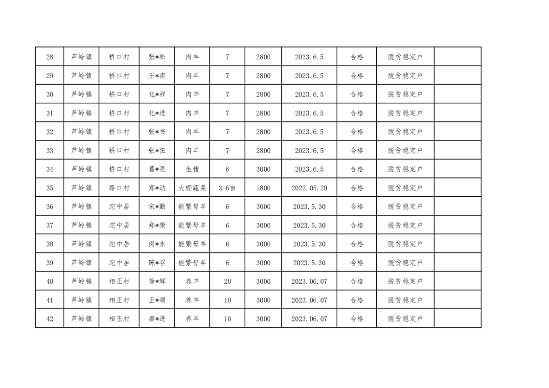 埇桥区芦岭镇2023年财政专项扶贫资金分配结果