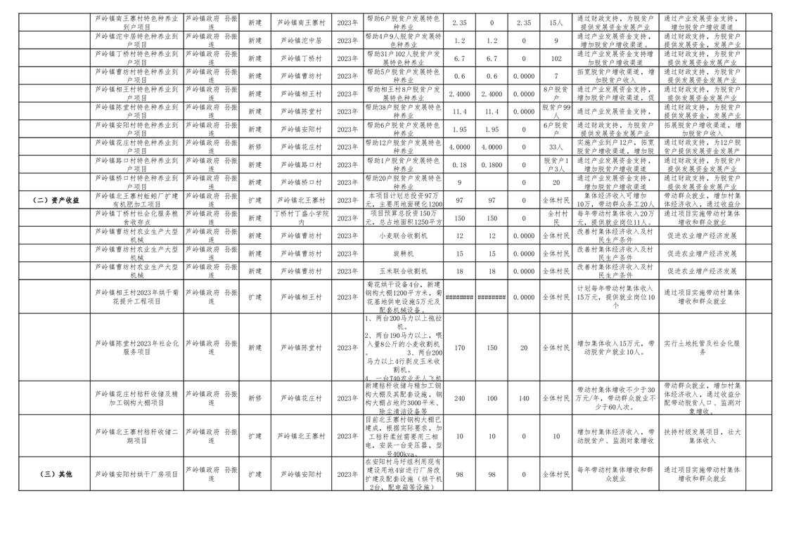 芦岭镇2023年巩固拓展脱贫攻坚成果和乡村振兴项目库建设情况
