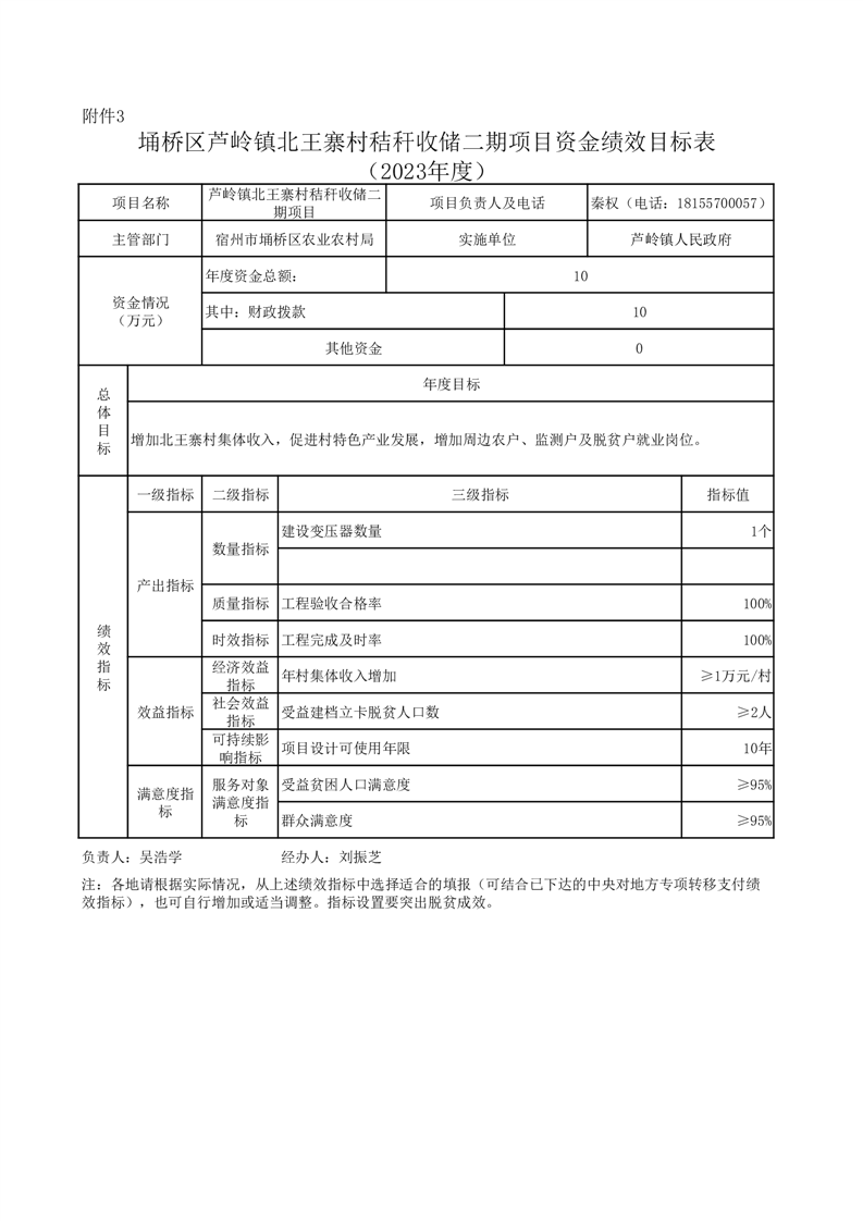 芦岭镇2023年产业到村项目资金绩效目标表