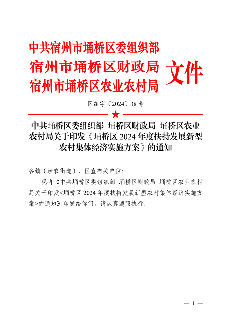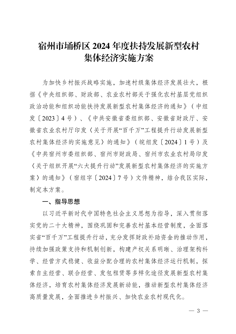 【上级文件】宿州市埇桥区2024年度扶持发展新型农村集体经济实施方案