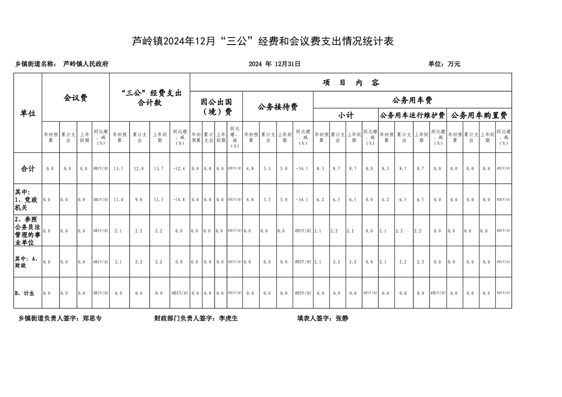 芦岭镇2024年12月“三公”经费和会议费支出情况统计表