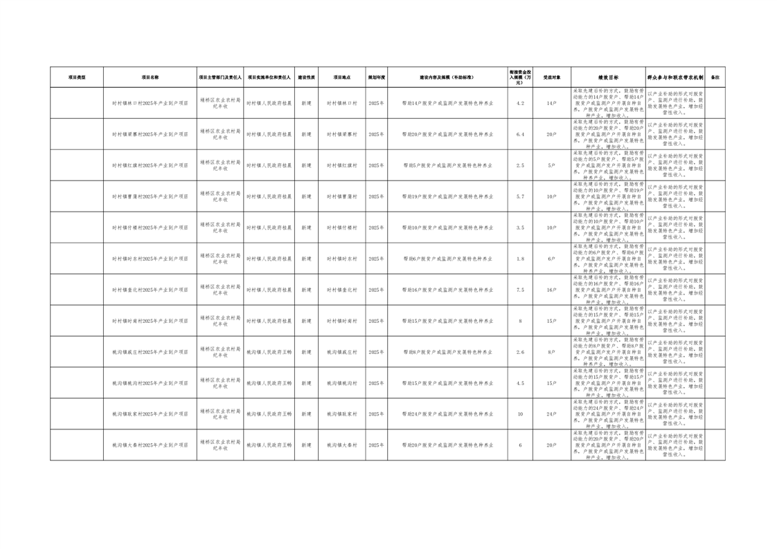 埇桥区2025年财政衔接推进乡村振兴补助资金项目实施计划明细表