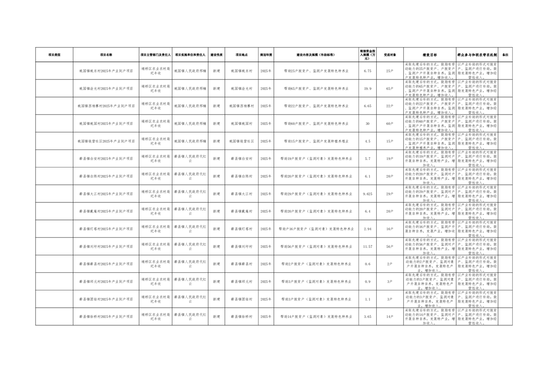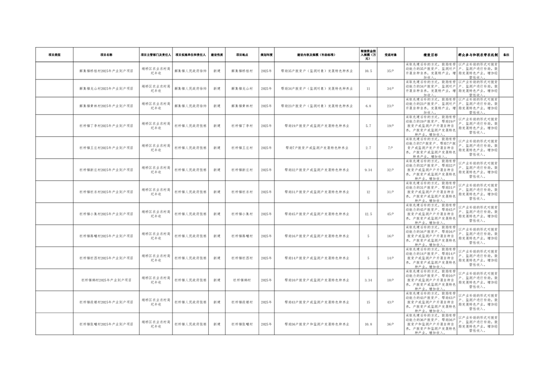 埇桥区2025年财政衔接推进乡村振兴补助资金项目实施计划明细表