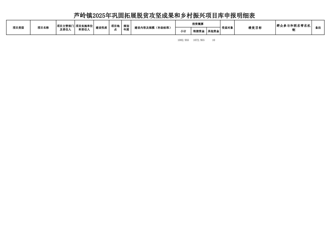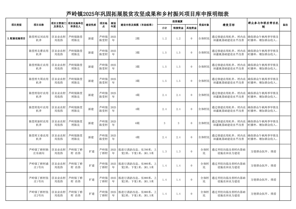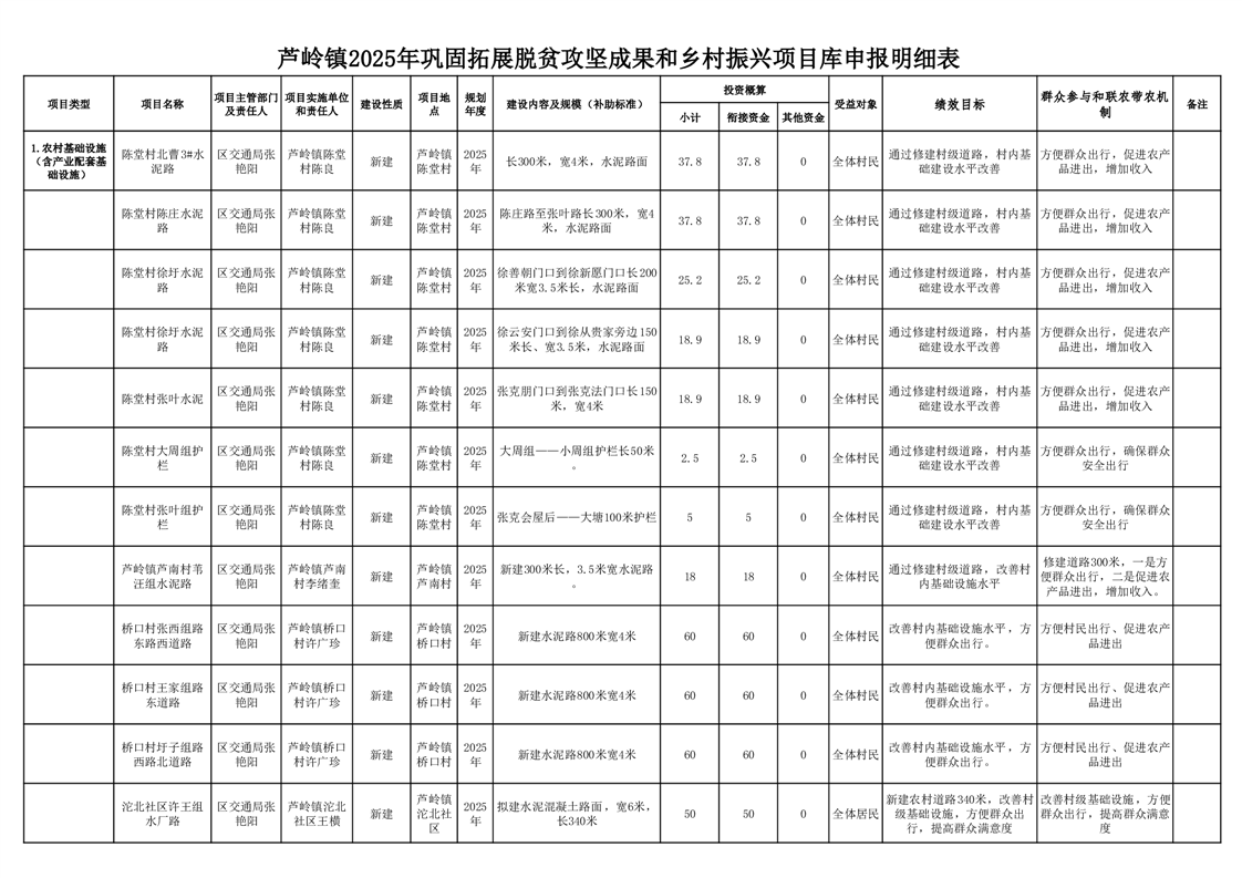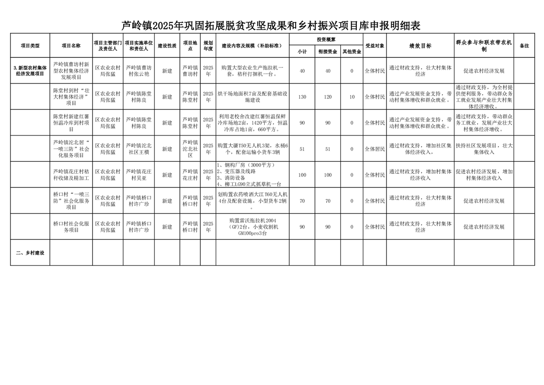 芦岭镇2025年巩固拓展脱贫攻坚成果和乡村振兴项目库申报明细表
