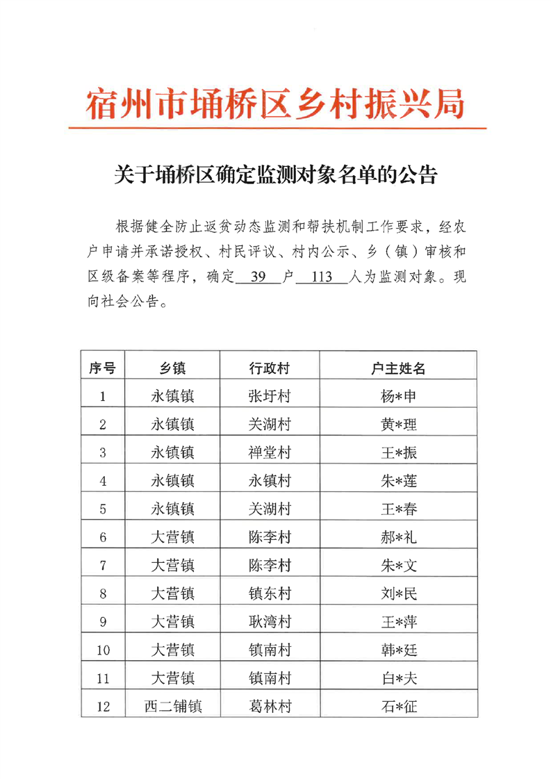 关于埇桥区确定监测对象名单的公告
