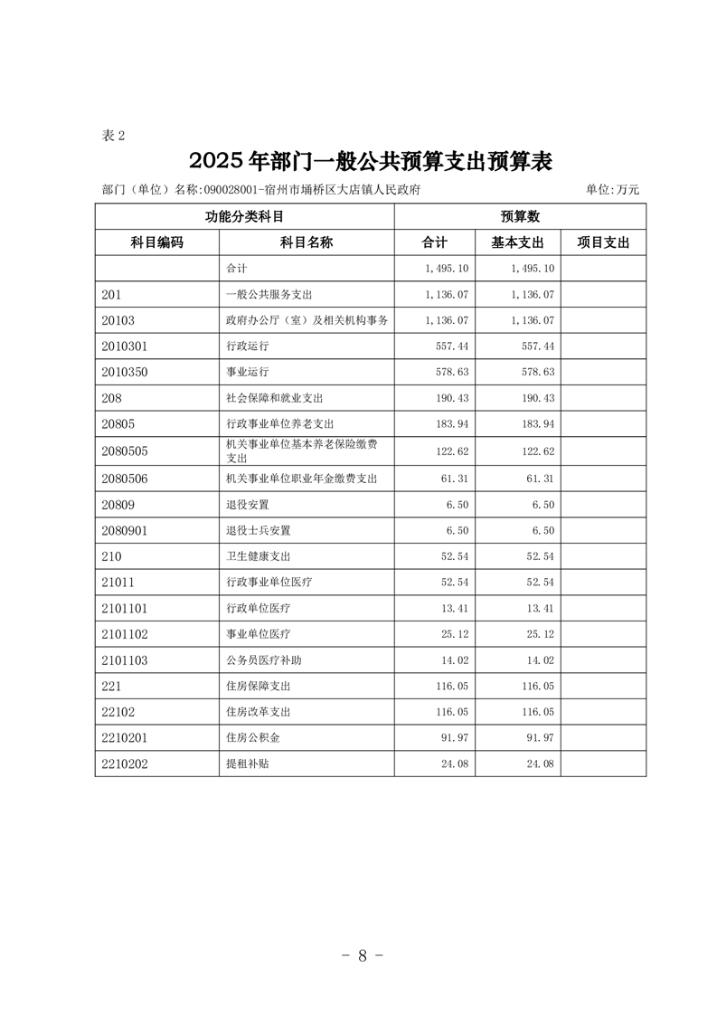 埇桥区大店镇人民政府2025年部门预算