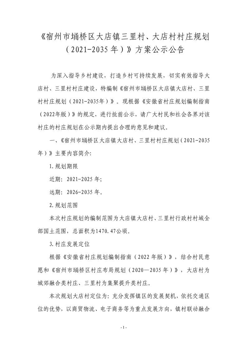 《宿州市埇桥区大店镇三里村、大店村村庄规划(2021-2035年)》方案公示公告
