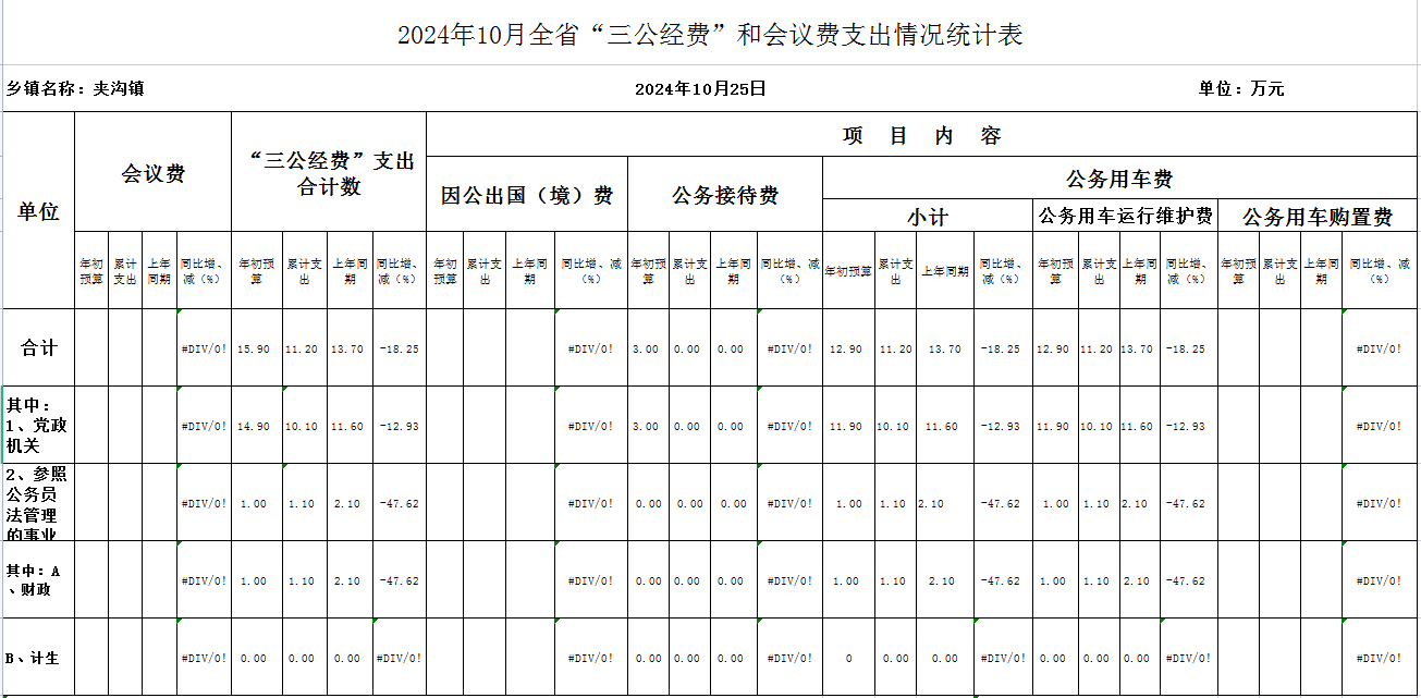 2024年10月夹沟镇“三公”经费全口径支出情况统计表