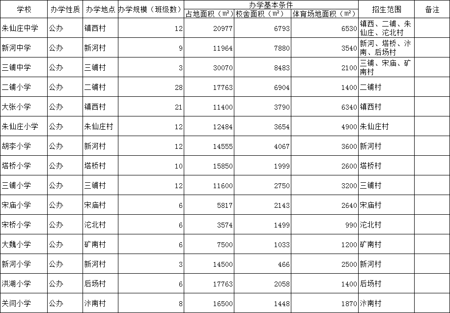 【义务教育均衡发展】朱仙庄镇义务教育学校办学及招生情况一览表
