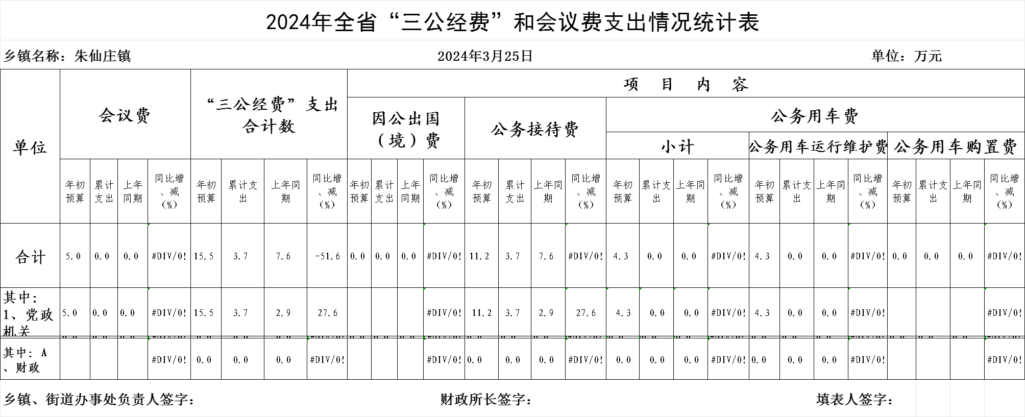 朱仙庄镇2024年3月份“三公经费”和会议费支出情况统计表