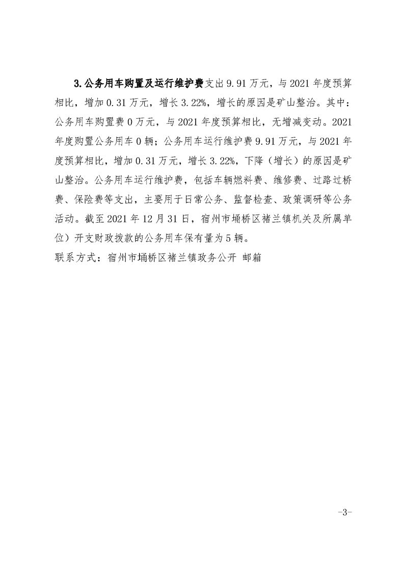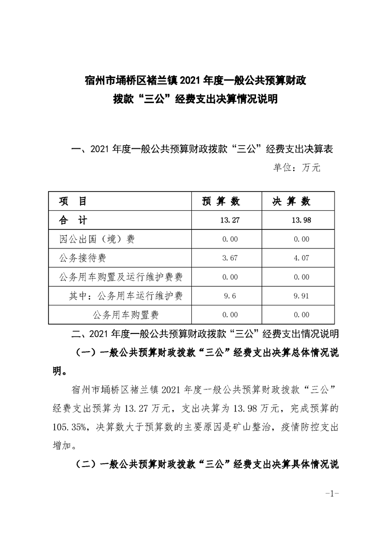 【2021年三公决算】宿州市埇桥区褚兰镇2021年度一般公共预算财政拨款“三公”经费支出决算情况说明