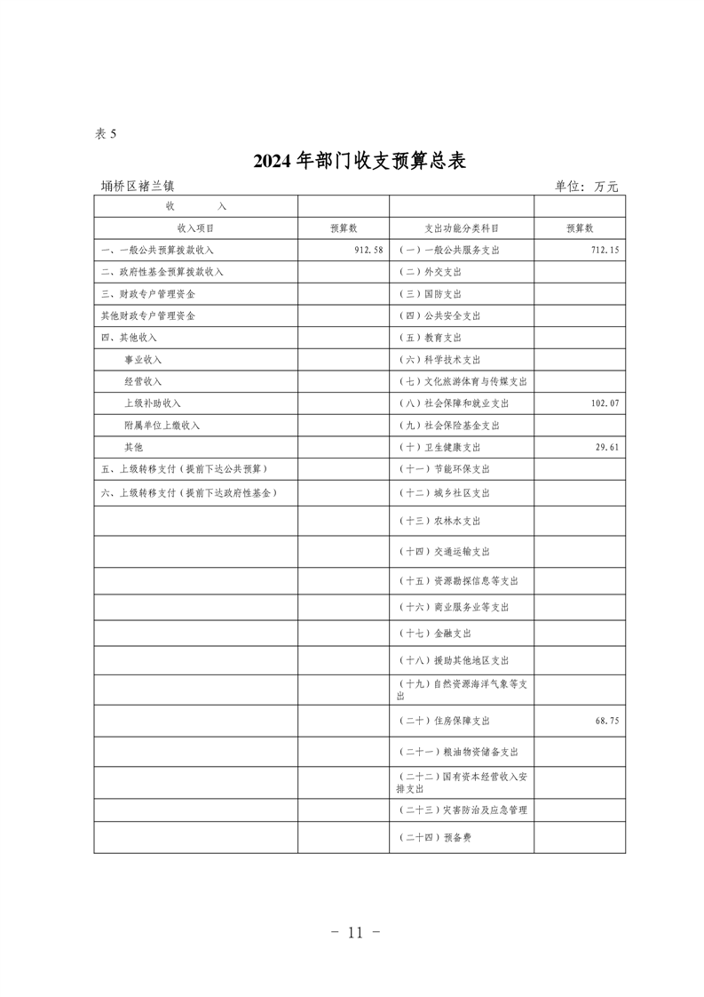 埇桥区褚兰镇2024年部门预算及说明