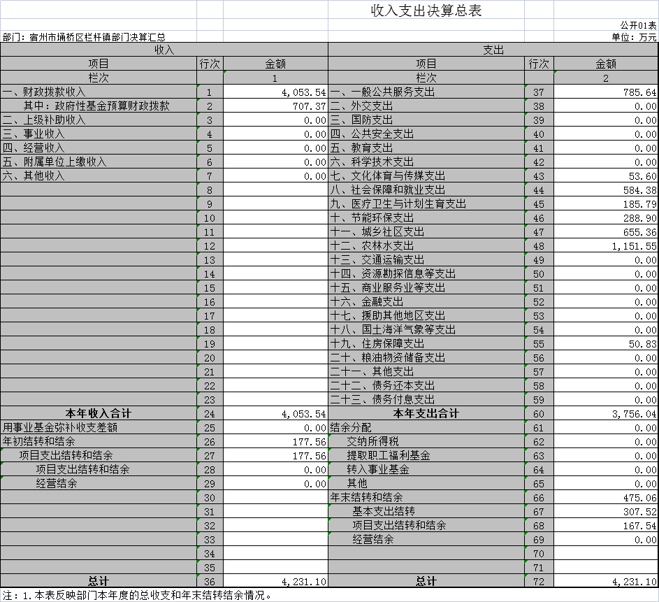 宿州市埇桥区栏杆镇2017年部门决算批复表