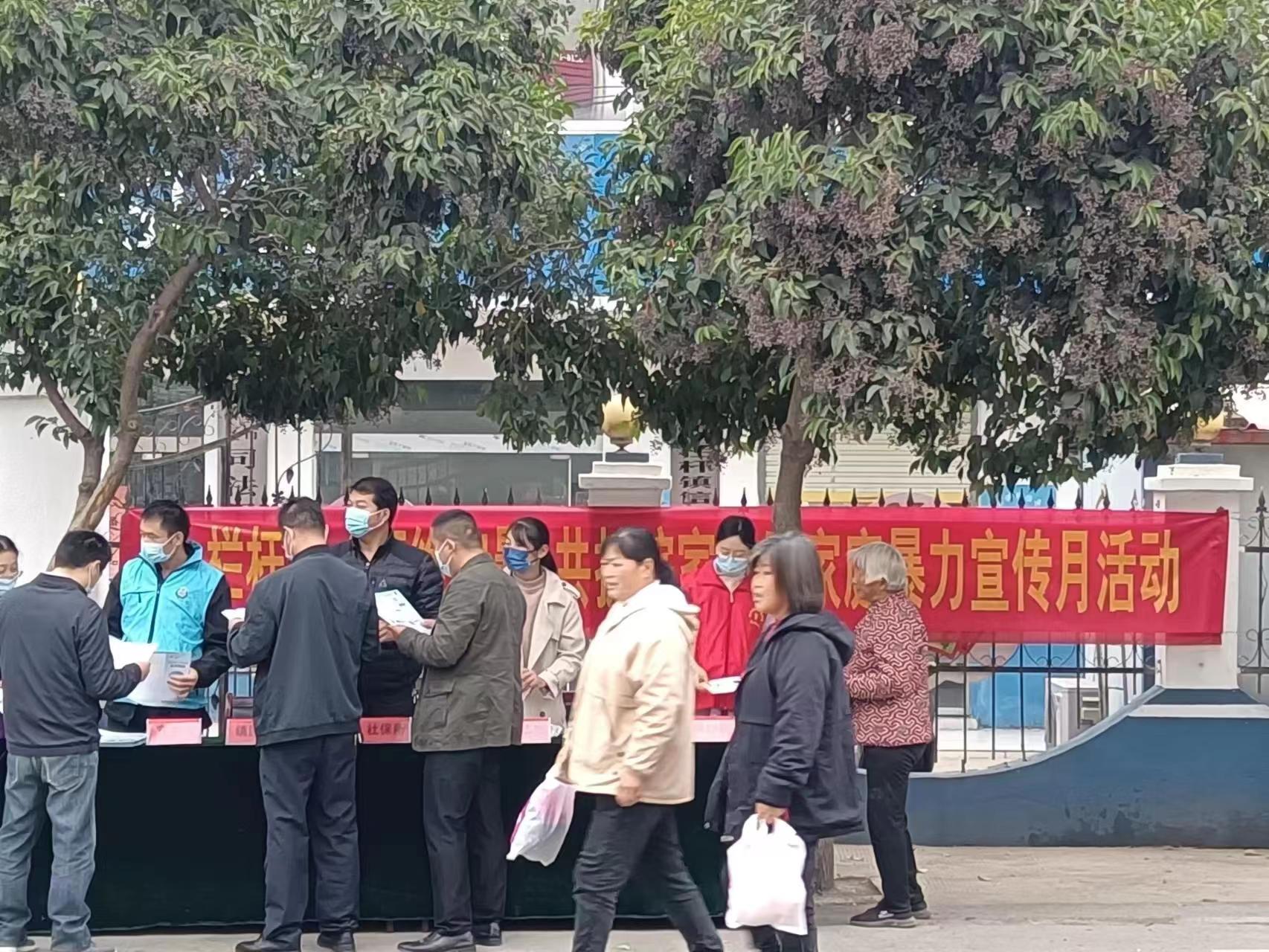 为预防和制止家庭暴力,进一步增强广大妇女和家庭的反家暴意识,提升广大妇女的法治意识和维权能力,11月18日上午,栏杆镇司法所、妇联组织志愿者在集市广场开展“拒绝家暴,共护皖家”反家庭暴力宣传活动。